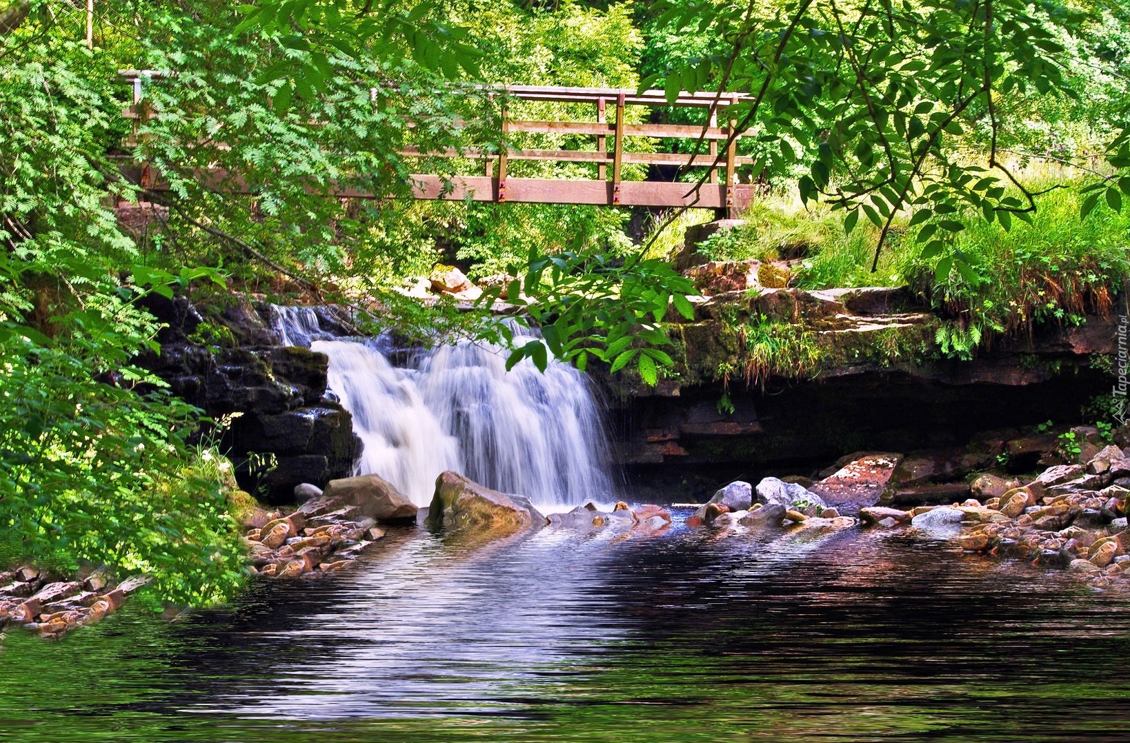 Edytor tapety: Rzeka, Wodospad, Mostek