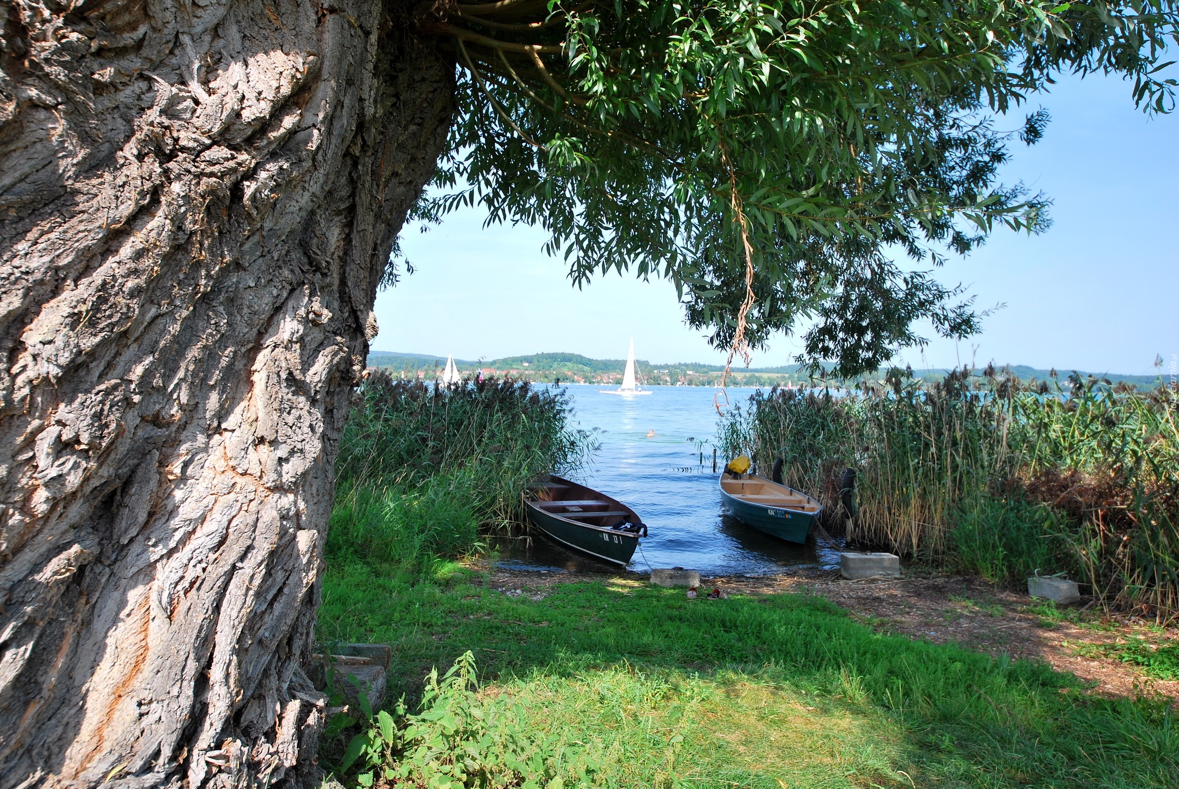 Edytor tapety: Wierzba, Kora, Jezioro, Łódki