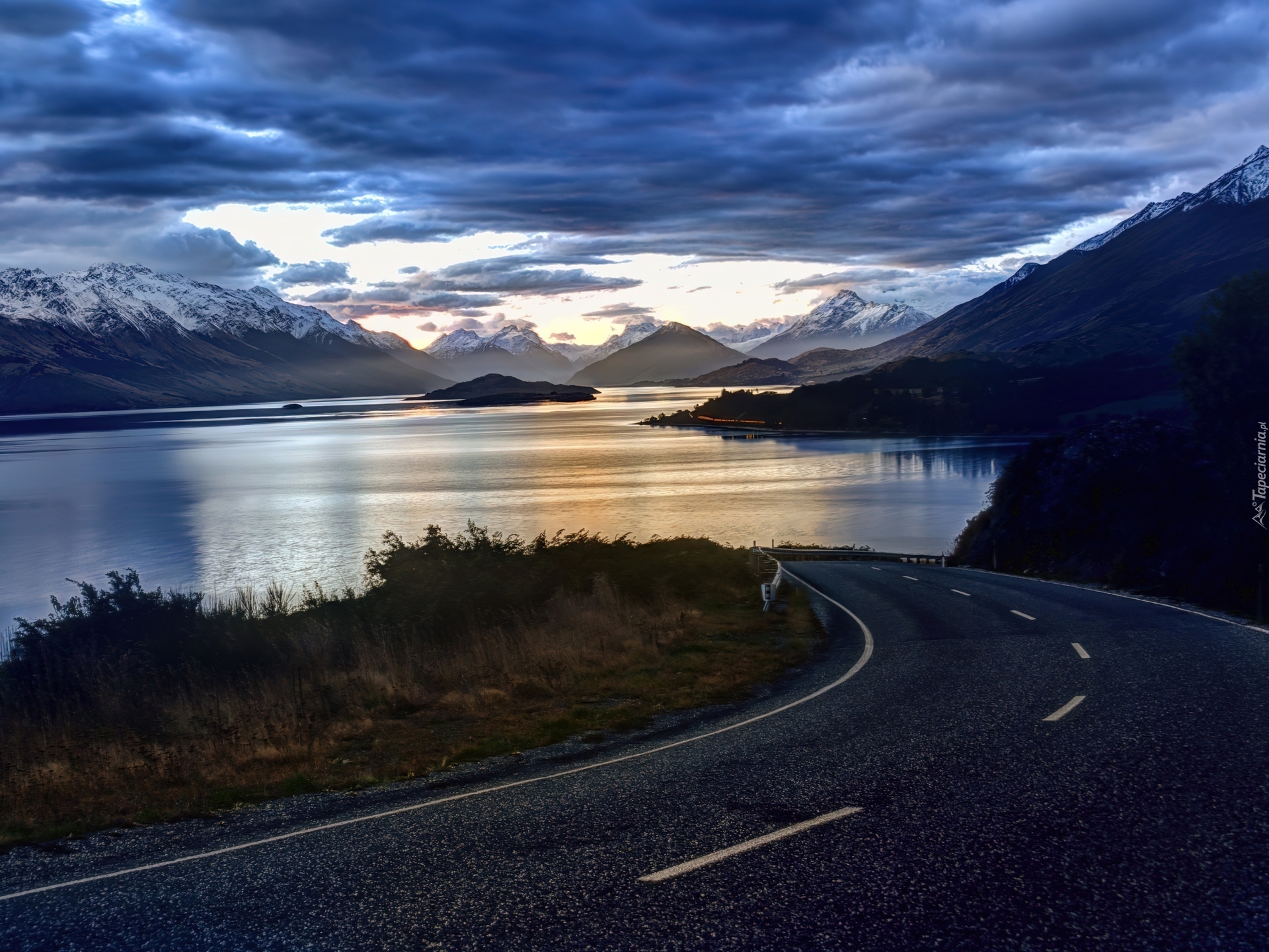 Edytor tapety: Droga, Jezioro, Góry, Chmury