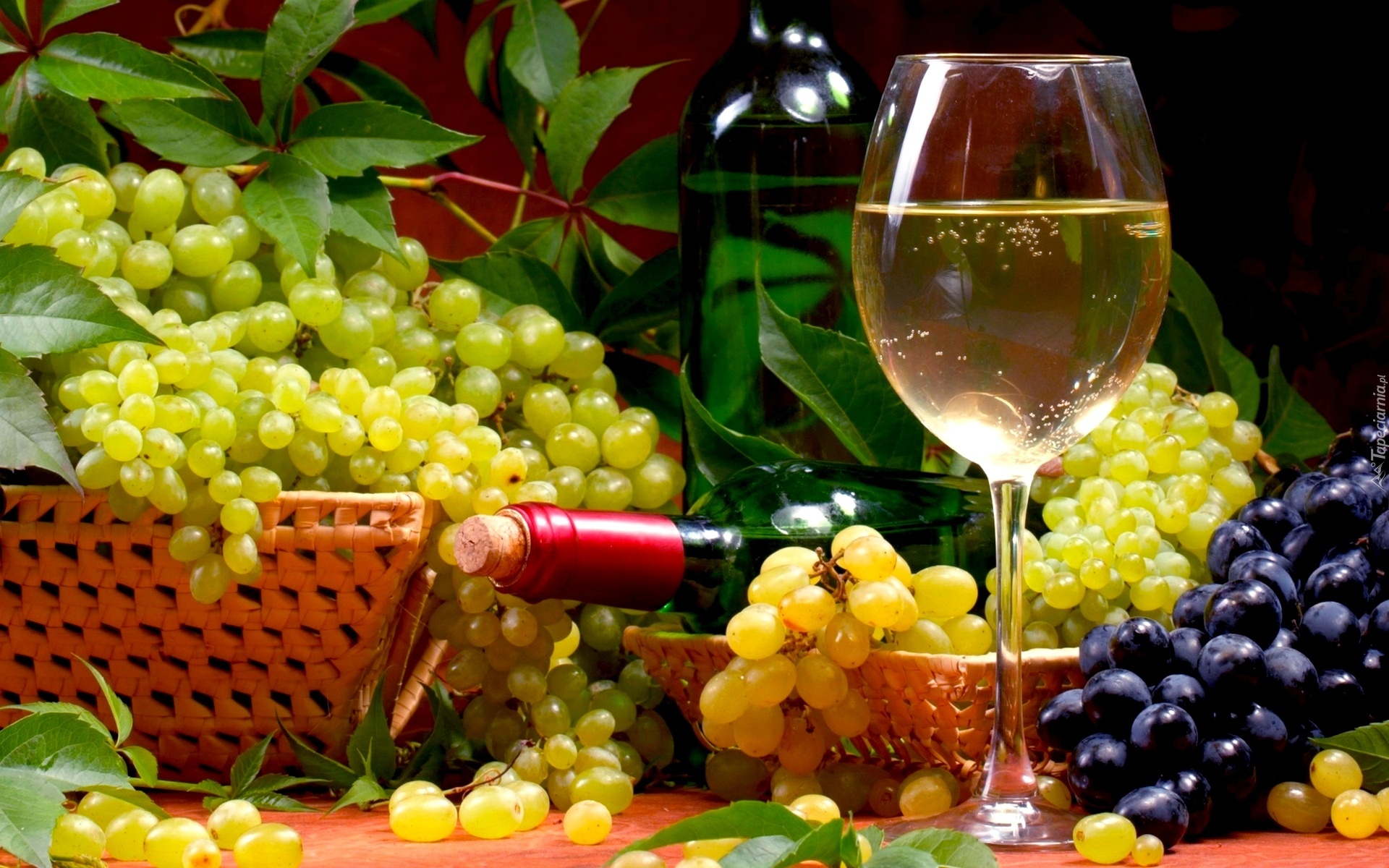 Edytor tapety: Kiście, Winogron, Kieliszek, Butelka, Wino