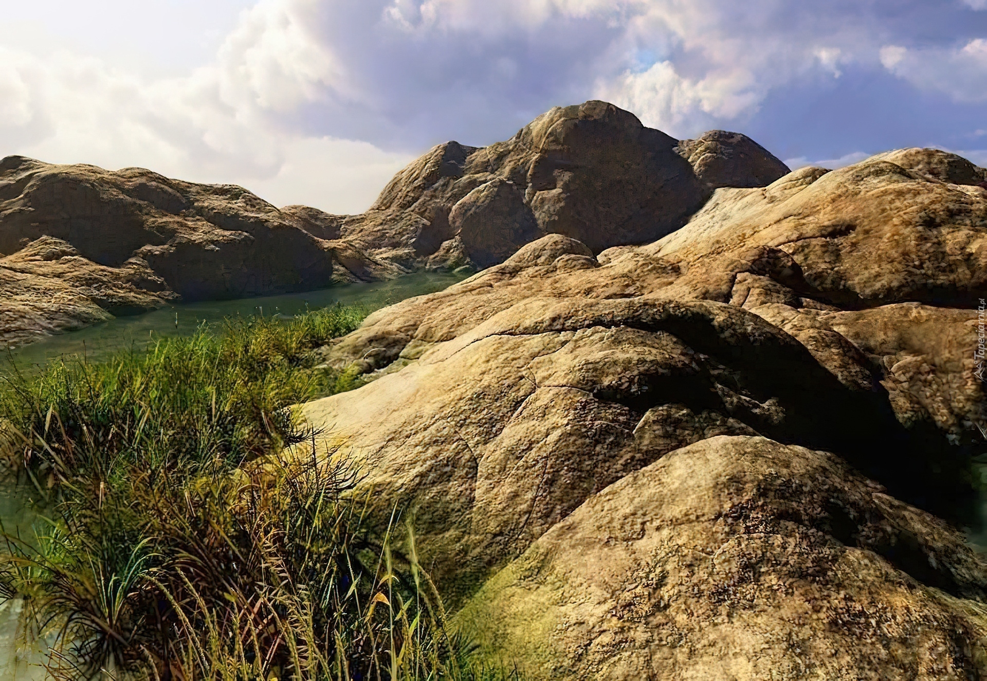 Edytor tapety: Chmury, Nad, Górami, Trawy