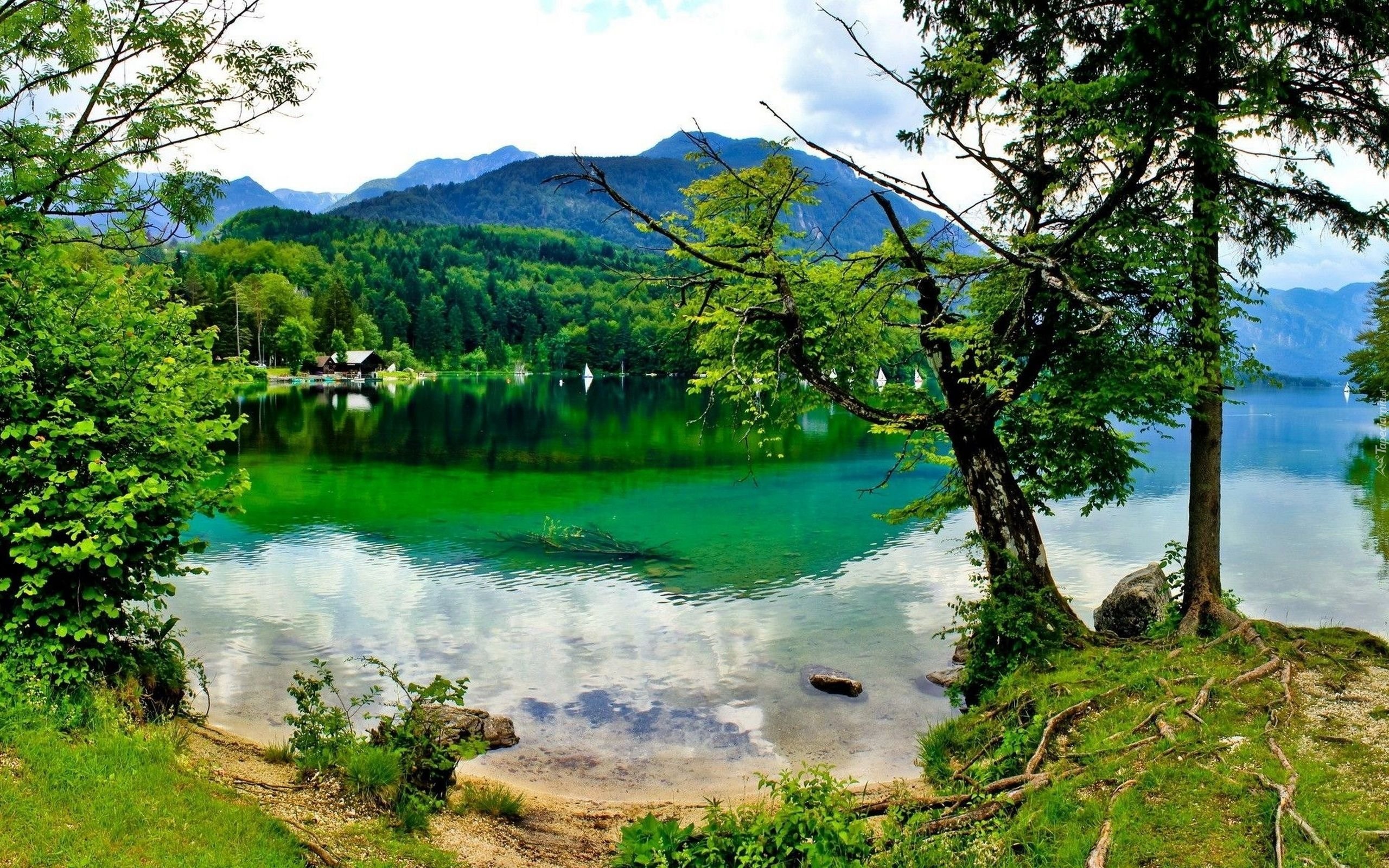 Edytor tapety: Góry, Jezioro, Brzeg, Drzewa