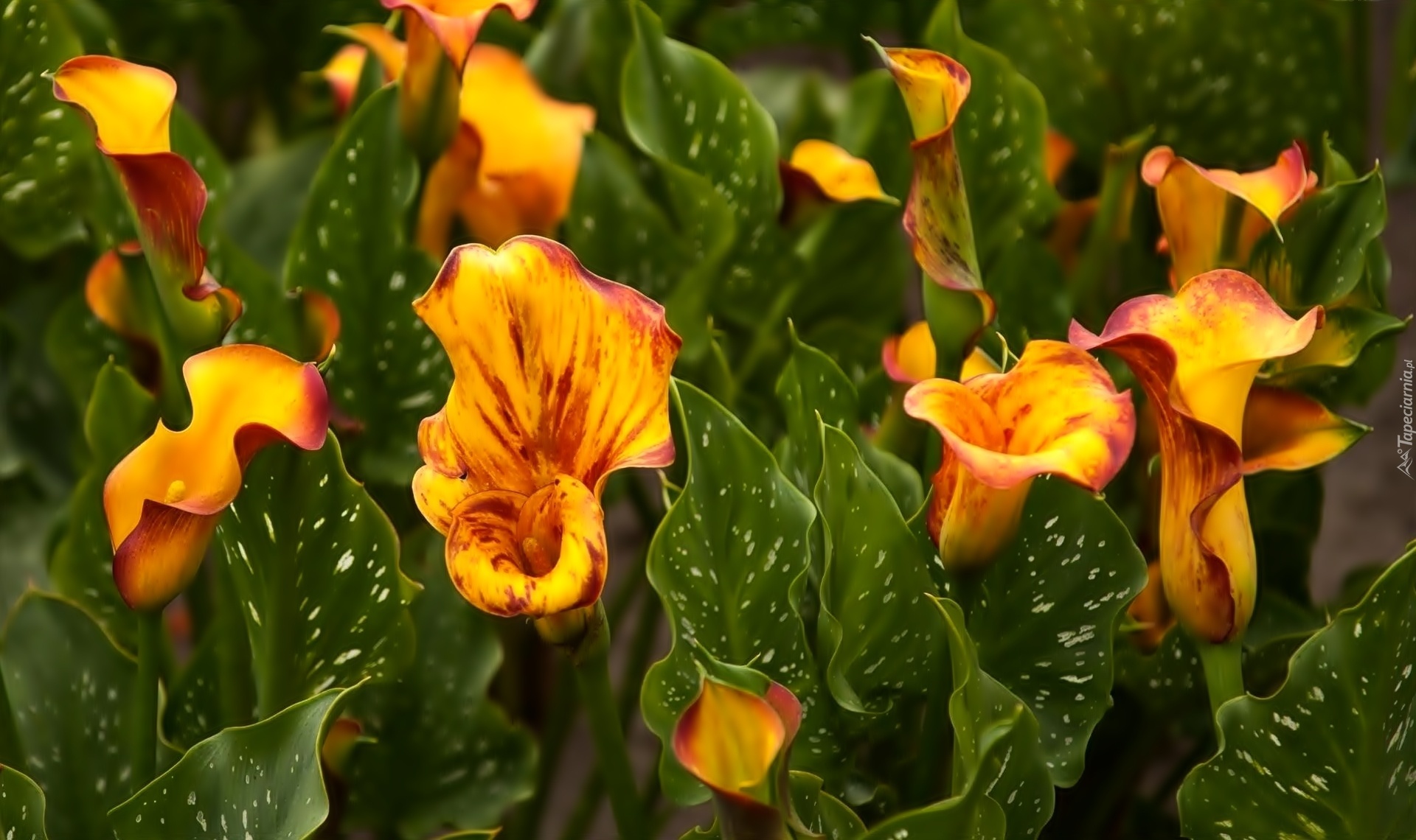 Edytor tapety: Pomarańczowe, Kalie, Liście