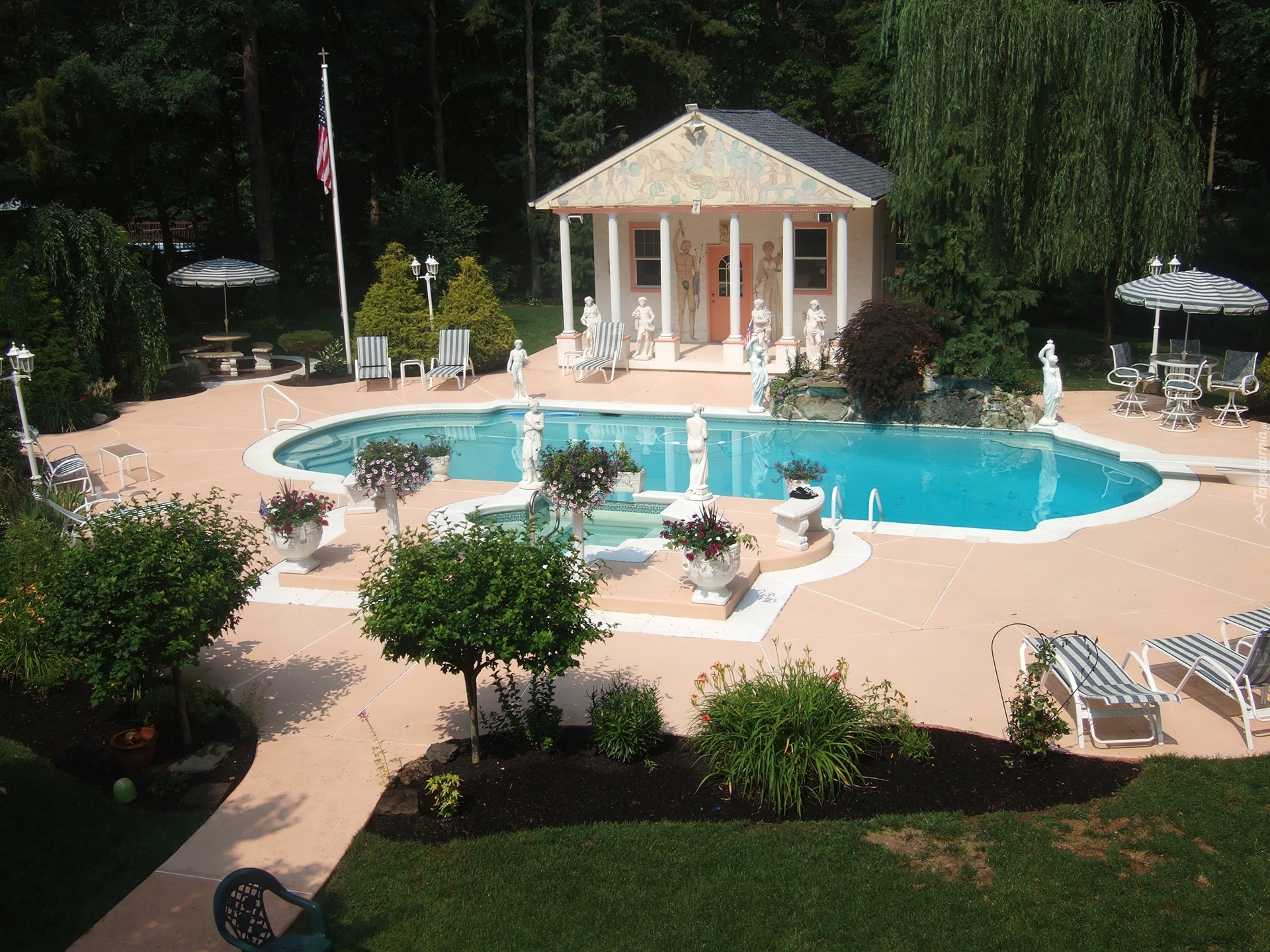 Edytor tapety: Basen, Altanka, Posągi