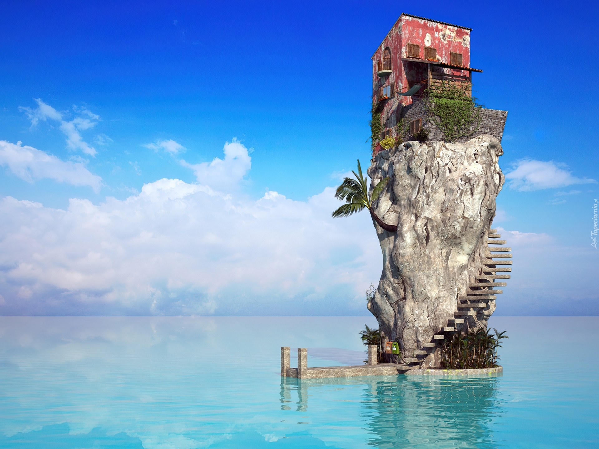 Edytor tapety: Dom, Na, Skale, Pośrodku, Morza