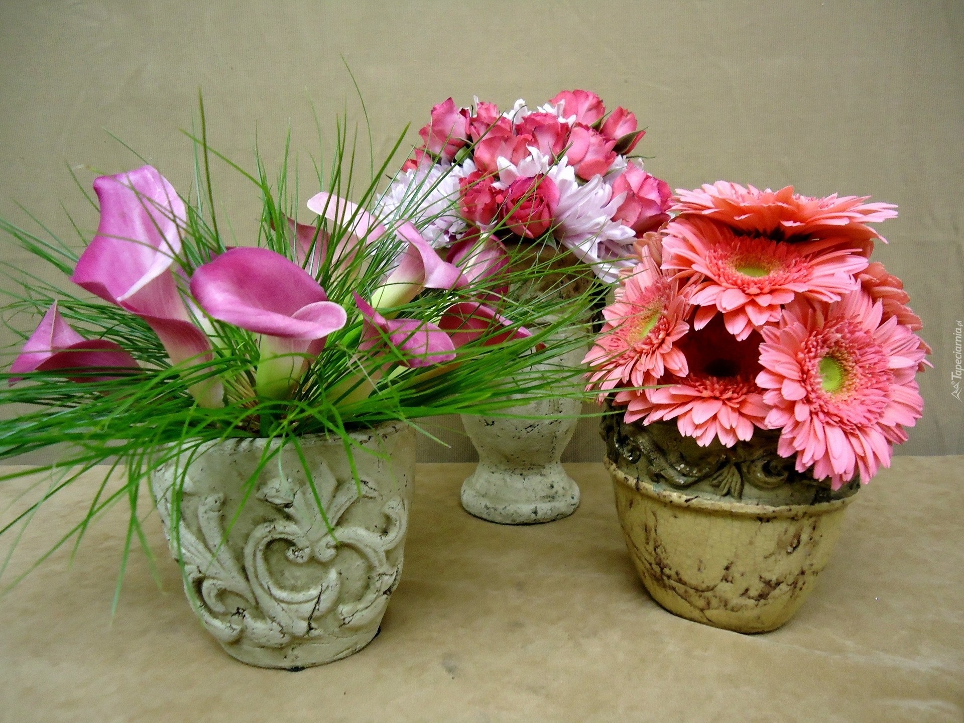 Edytor tapety: Bukiety, Kwiatów, Gerbery, Kalie, Róże