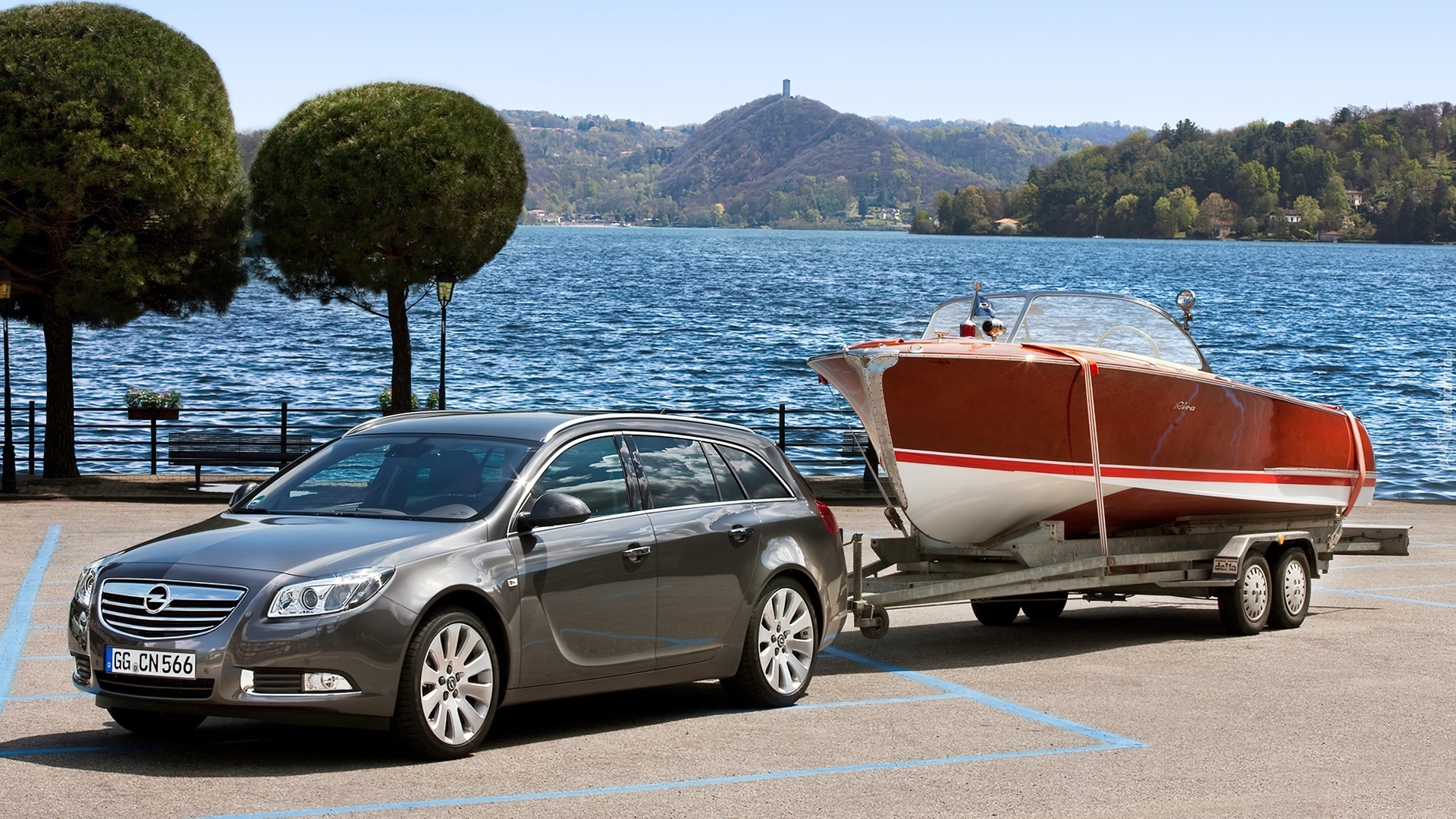 Edytor tapety: Opel Insignia, Przyczepa, Łódź, Jezioro
