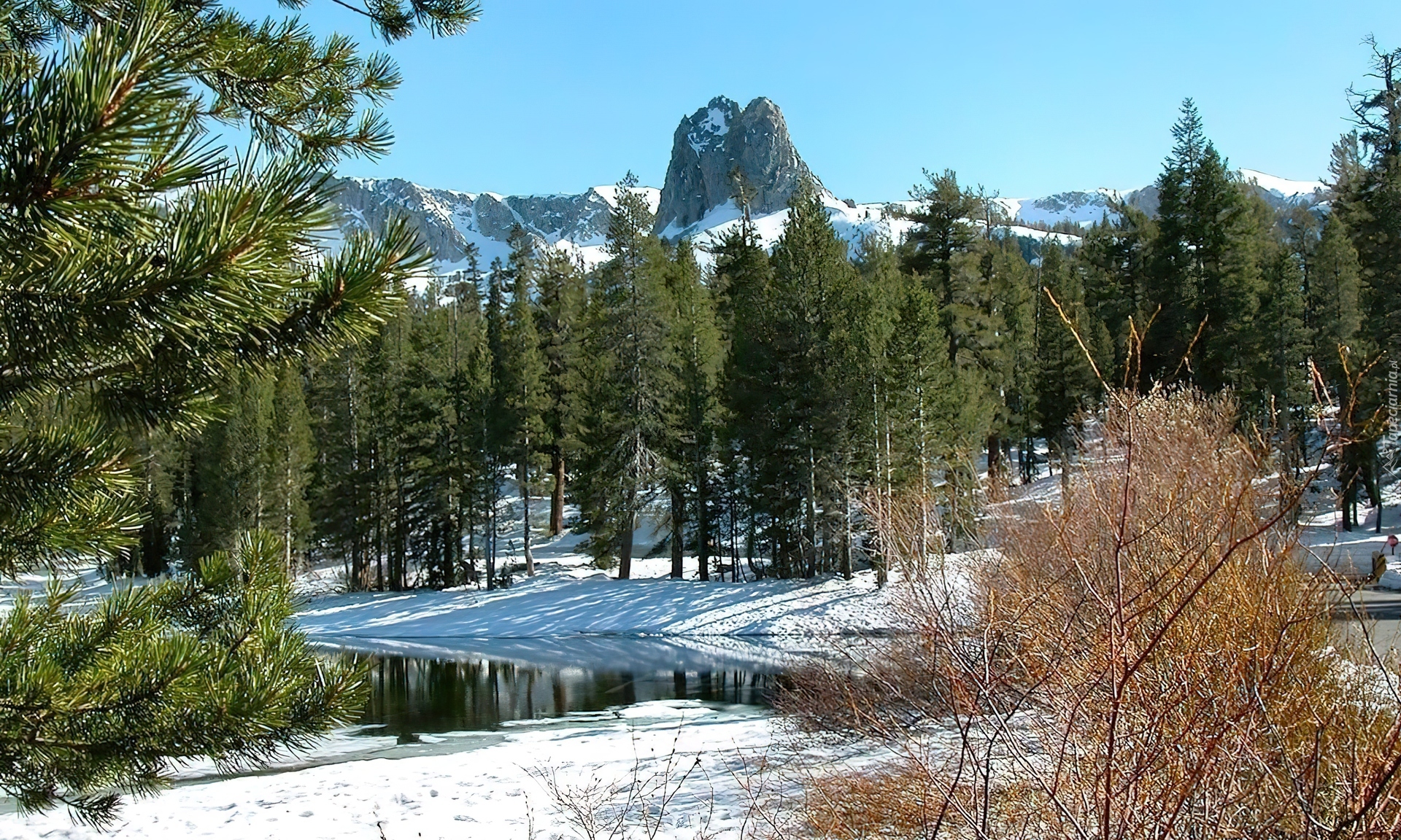 Edytor tapety: Zima, Góry, Rzeczka, Las