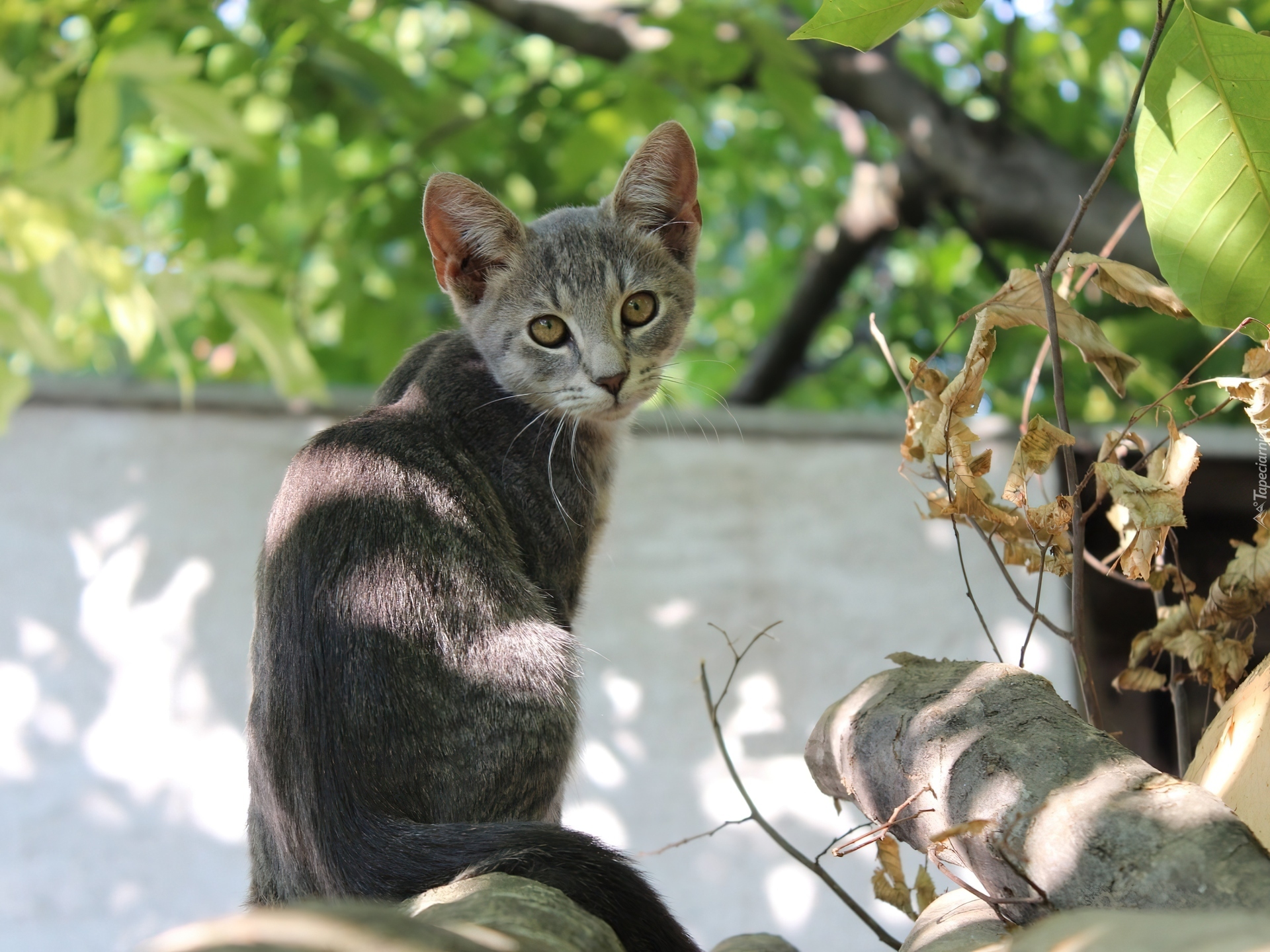 Edytor tapety: Szary, Kotek, W, Ogrodzie