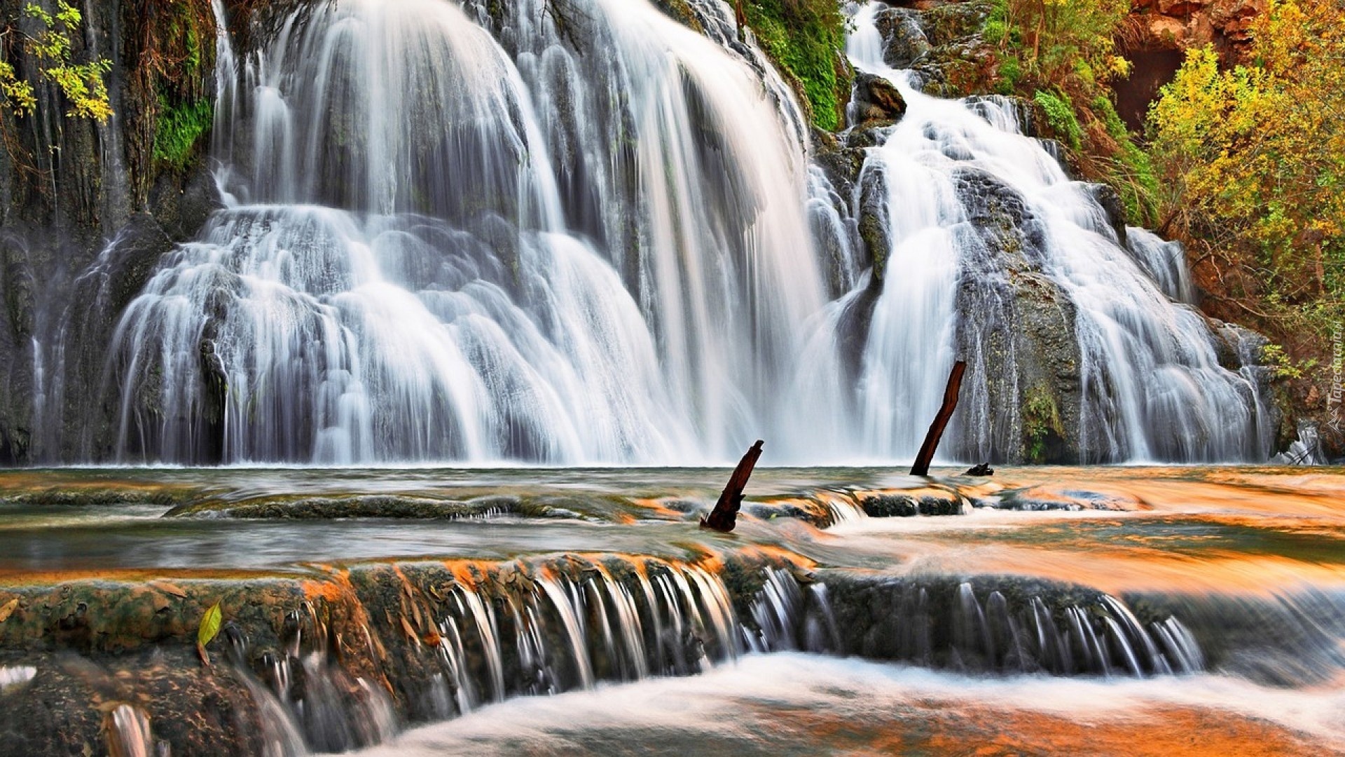 Edytor tapety: Kaskada, Skały, Drzewa