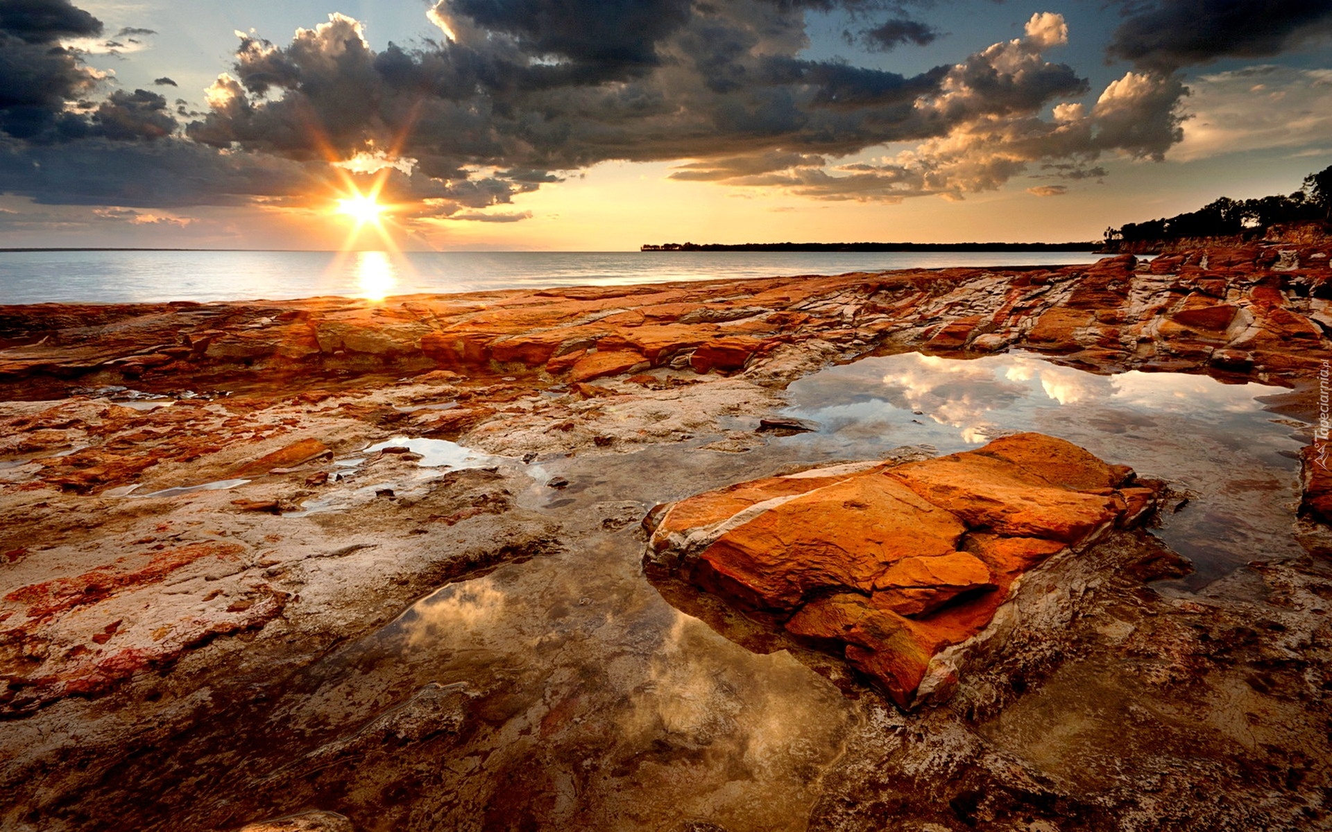 Edytor tapety: Zachód, Słońca, Morze, Skały