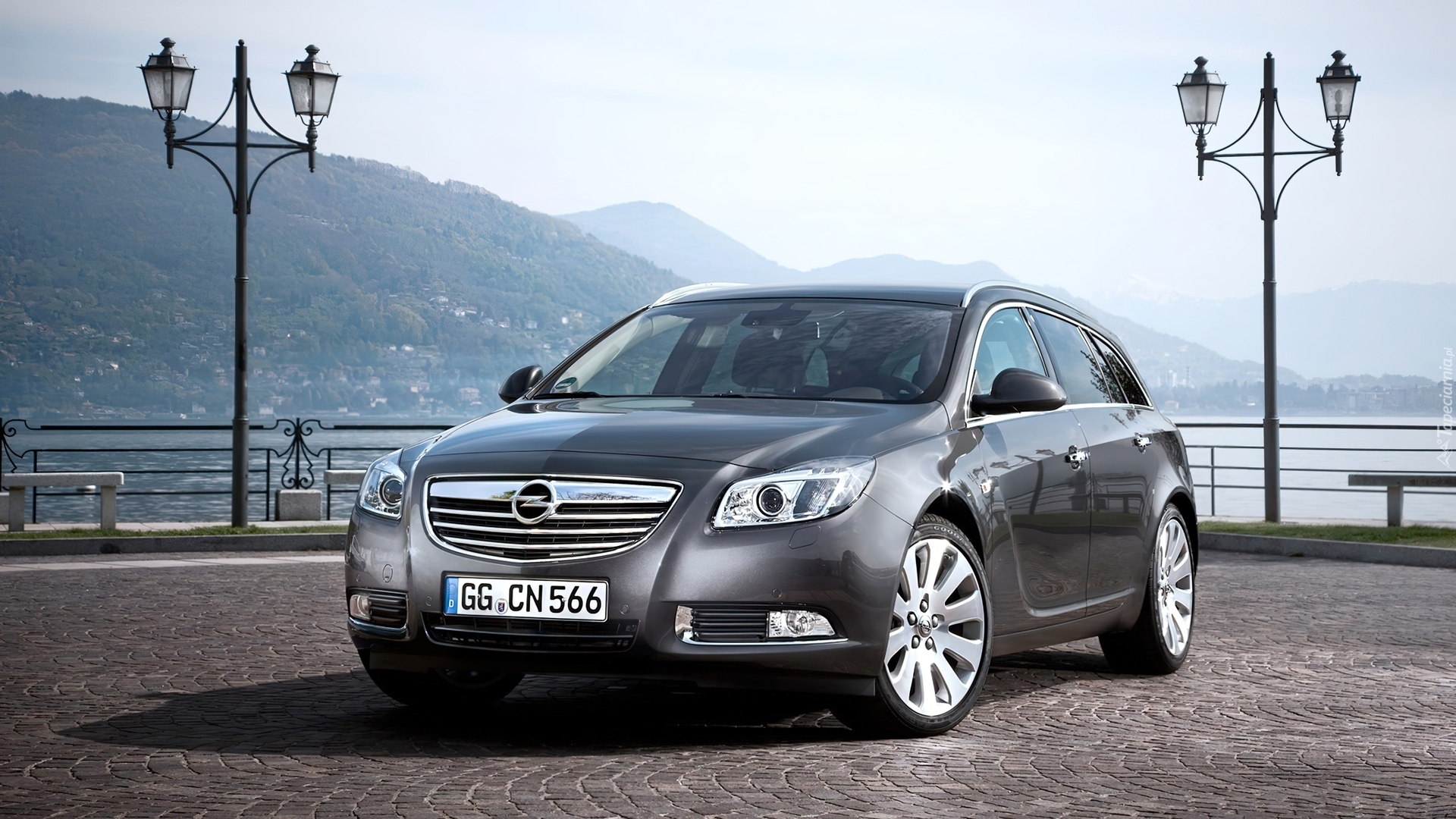 Edytor tapety: Opel Insignia, Góry, Jezioro, Latarnie
