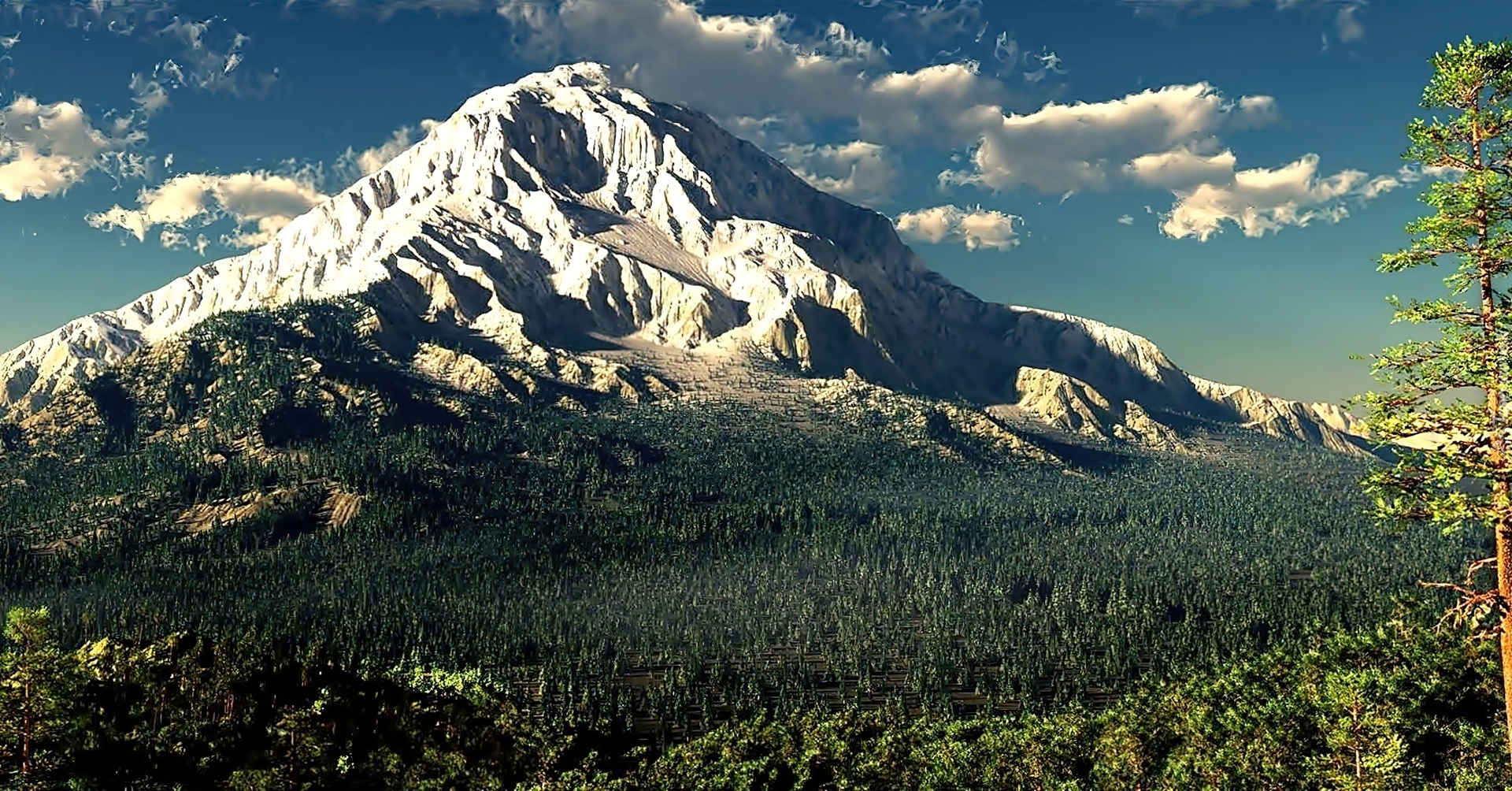 Edytor tapety: Szczyt, Góry, Lasy, Niebo