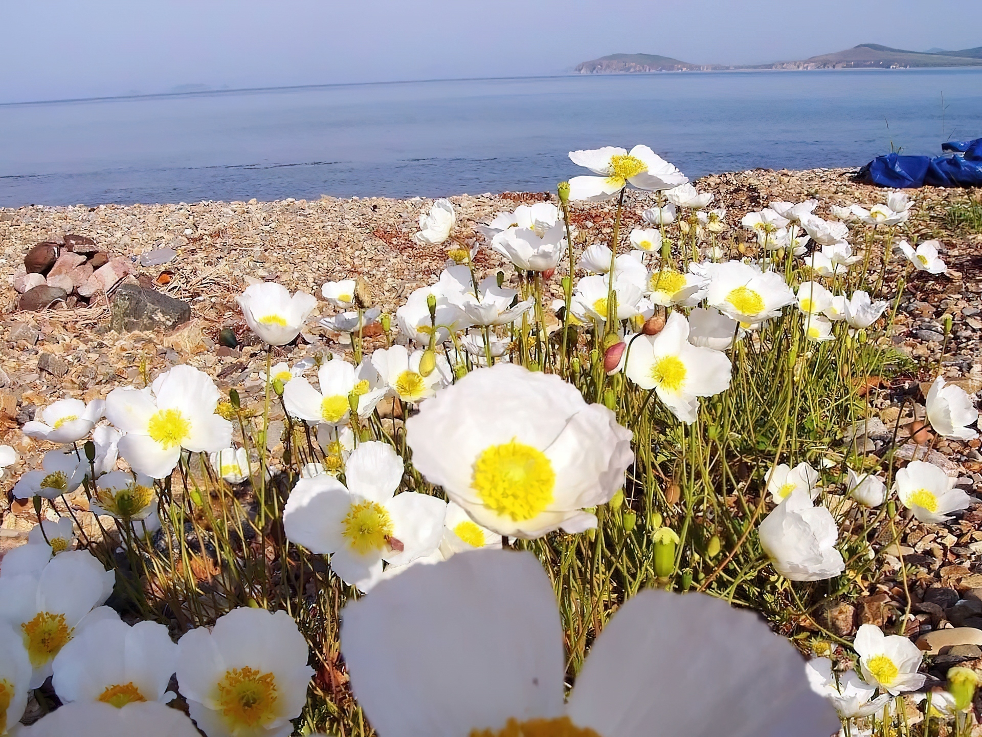 Edytor tapety: Brzeg, Morza, Białe, Maki