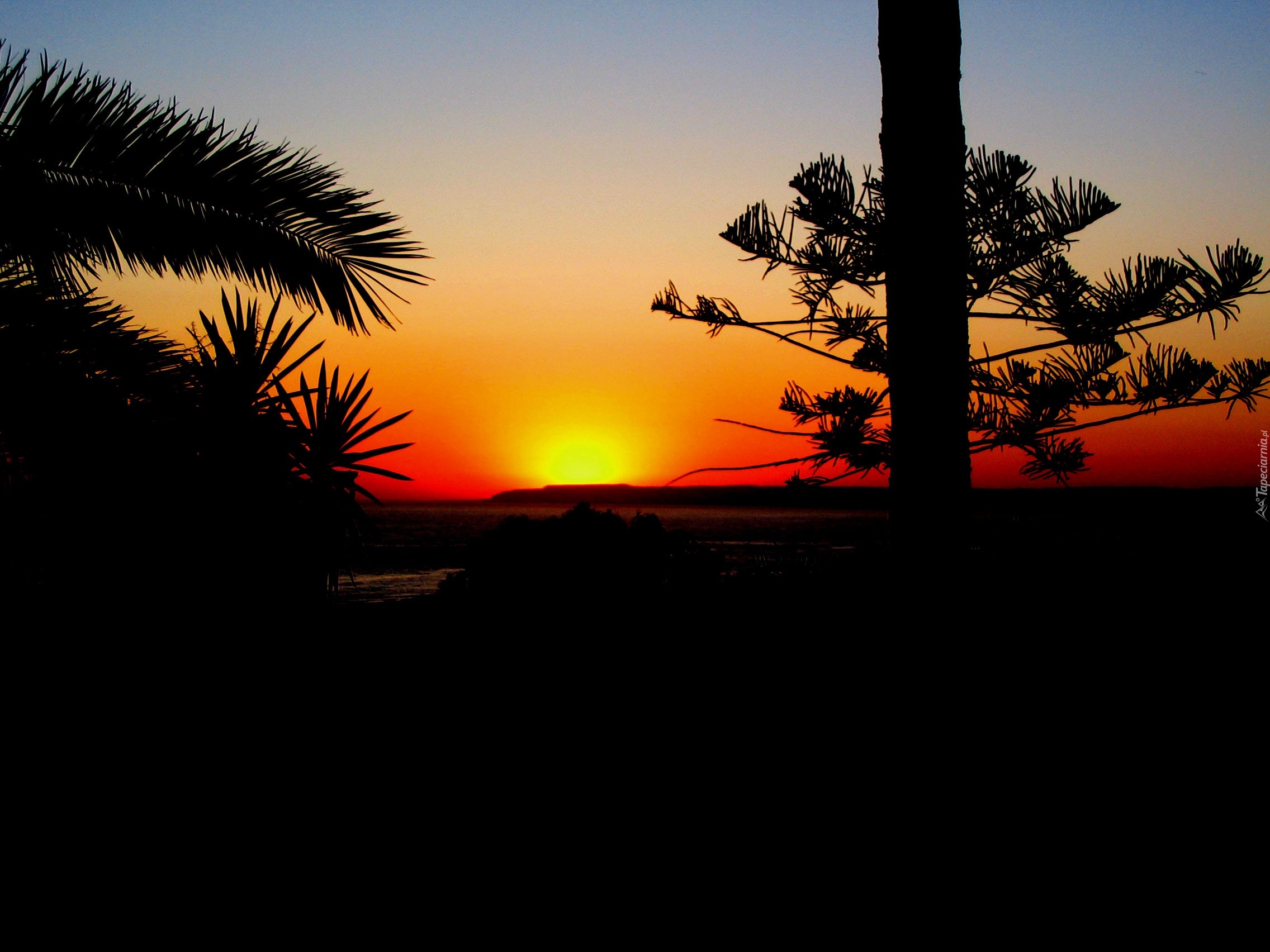 Edytor tapety: Zachód Słońca, Drzewa, Andaluzja