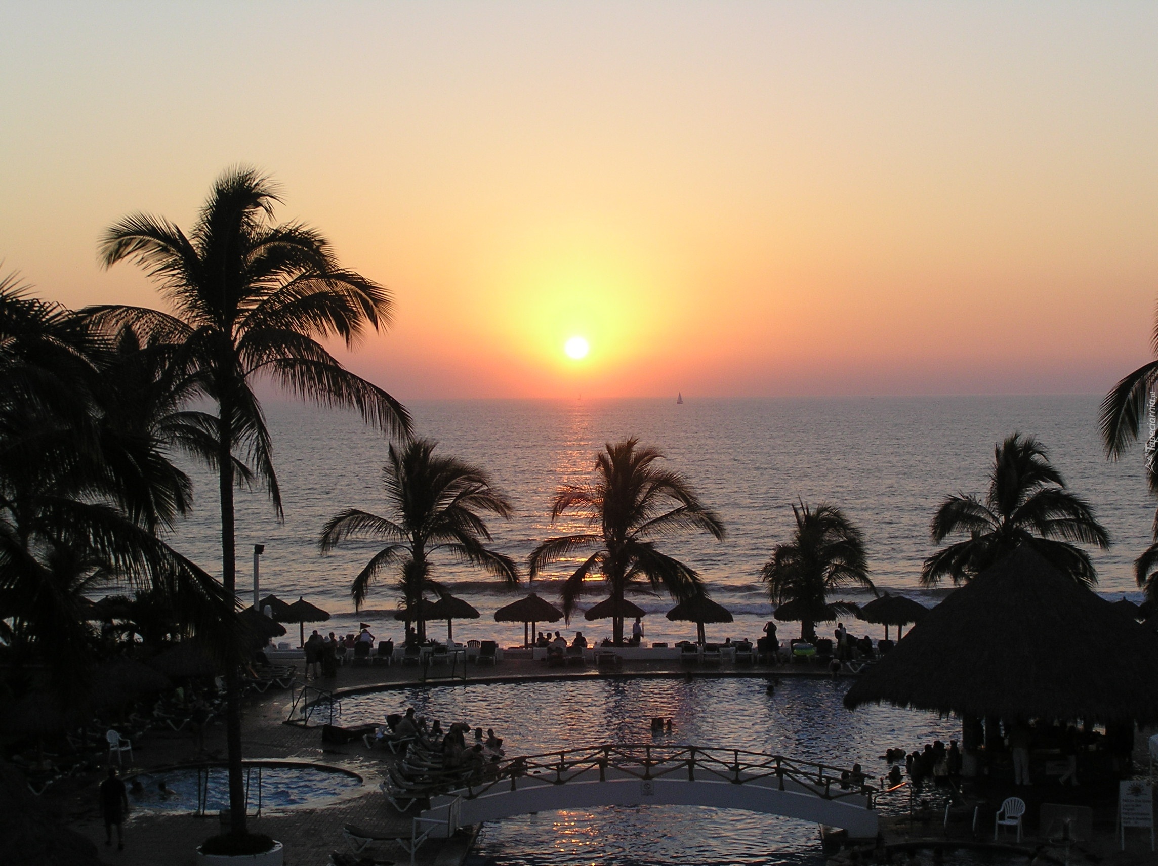 Edytor tapety: Zachód Słońca, Baseny, Palmy