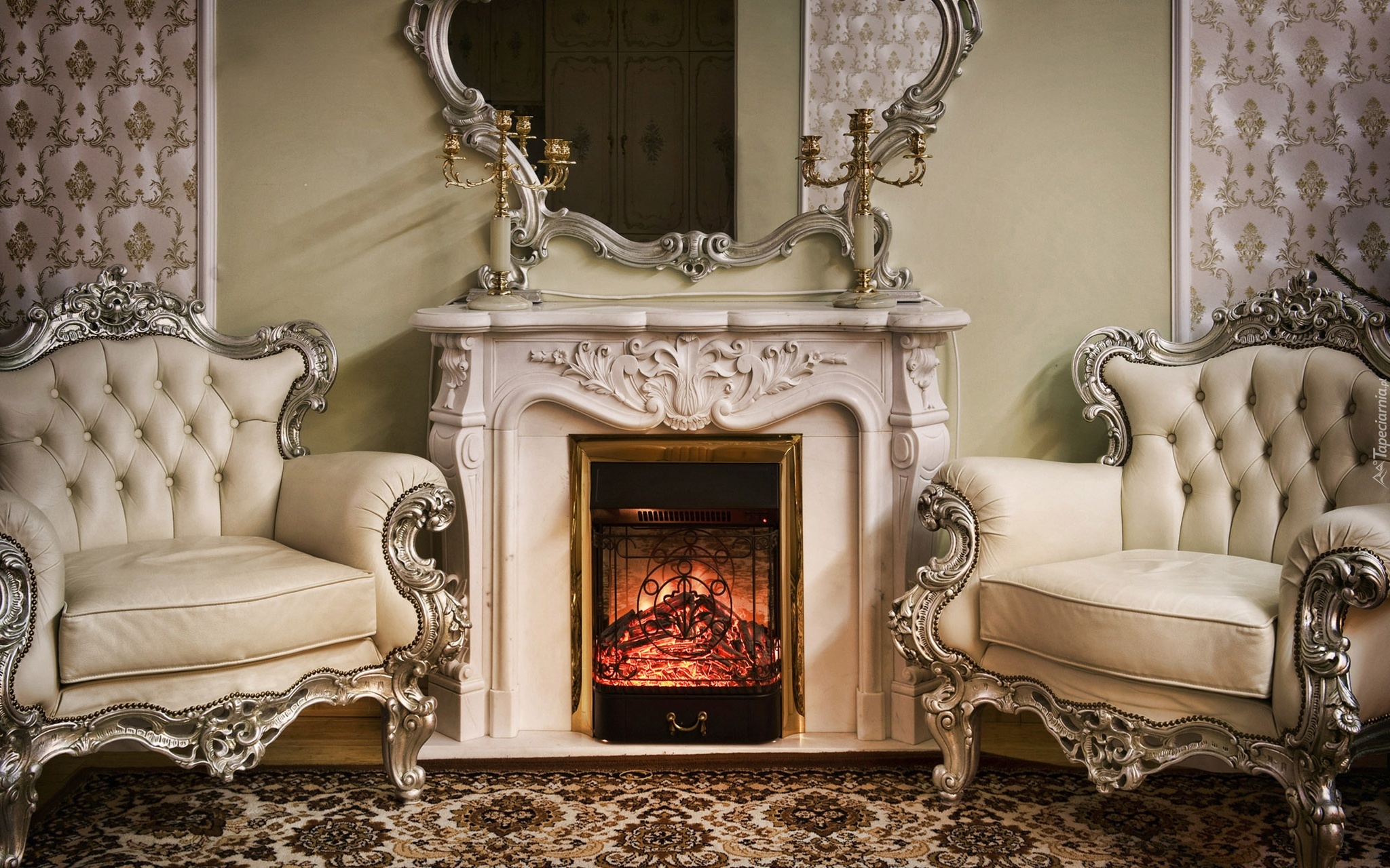 Edytor tapety: Salon, Kominek, Lustro, Stylowe, Fotele