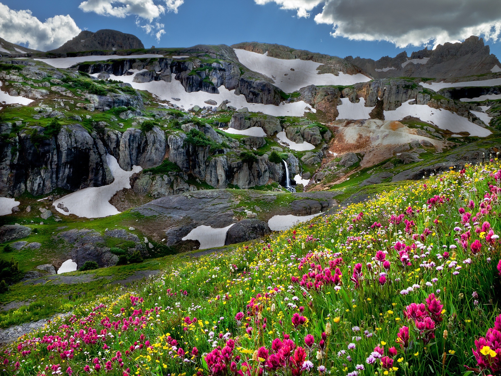 Edytor tapety: Góry, Skały, Łąka, Kolorowe, Kwiaty
