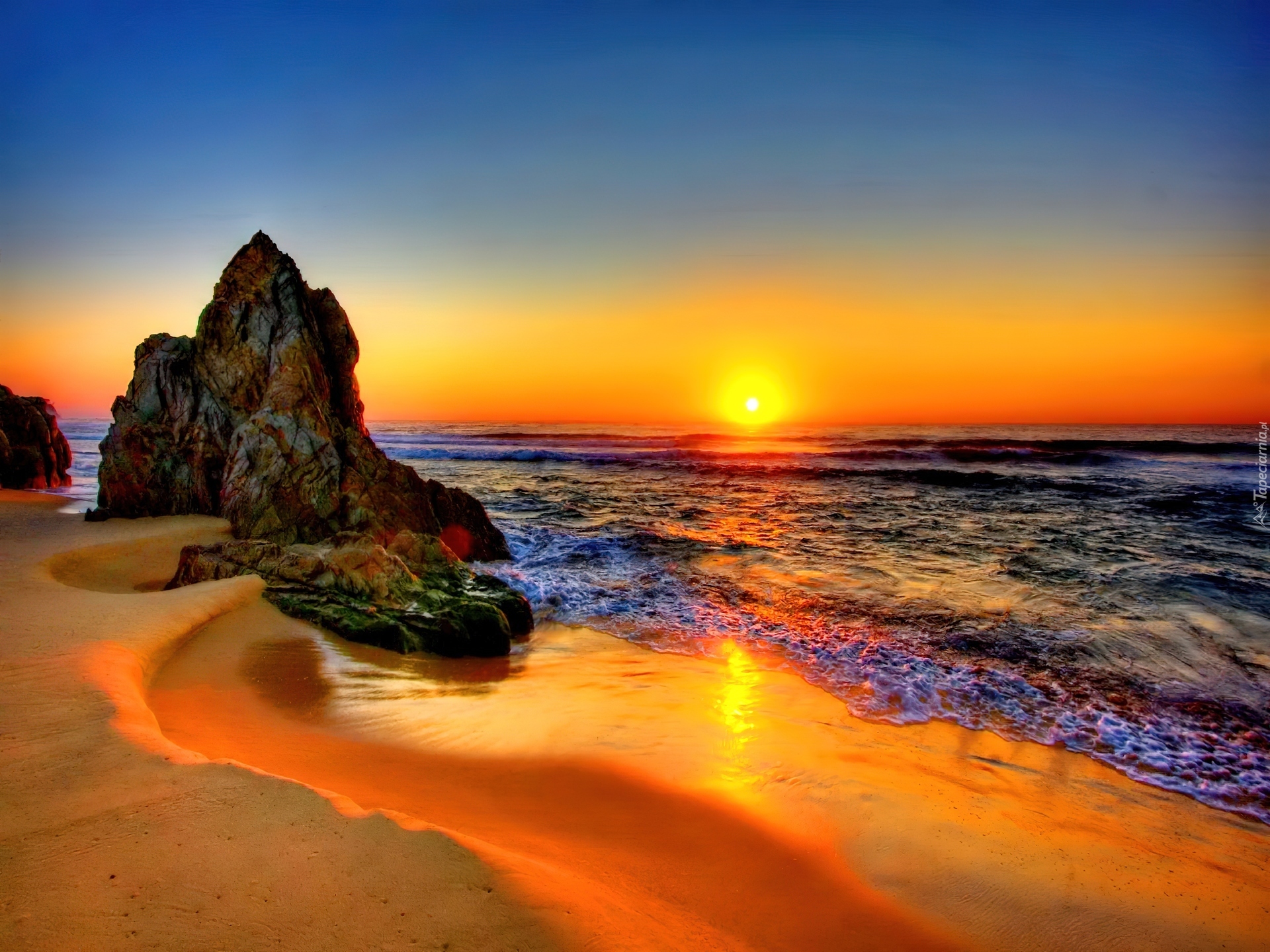 Edytor tapety: Morze, Plaża, Skały, Zachód Słońca