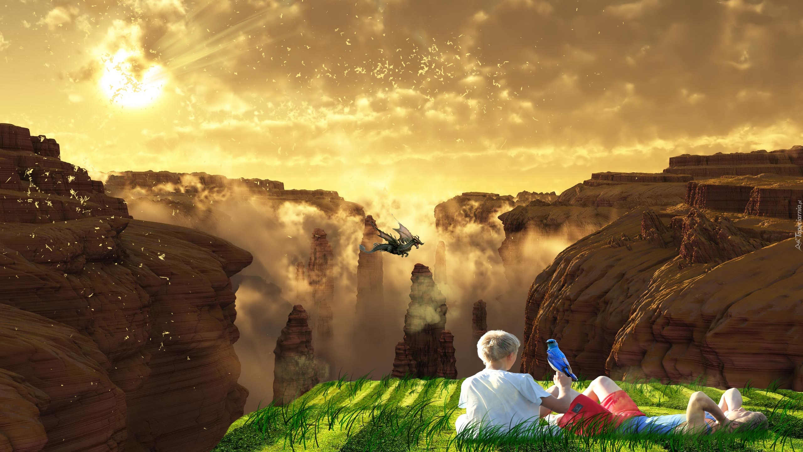Edytor tapety: Kanion, Chłopcy, Smok