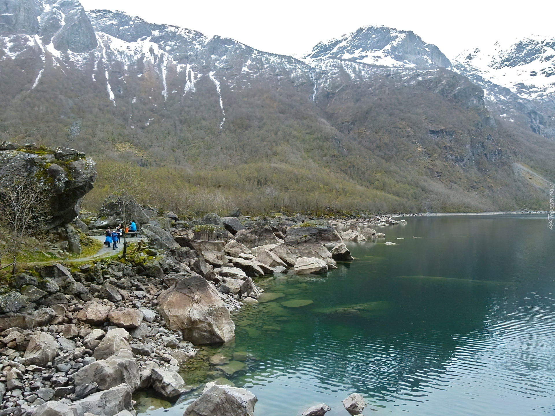 Edytor tapety: Jezioro, Kamienie, Góry
