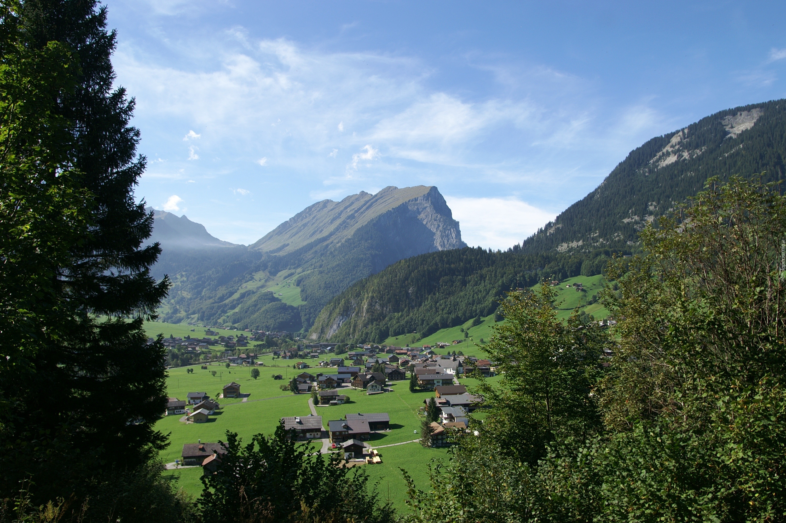 Edytor tapety: Kanisfluh, Austria, Góry, Dolina, Domy, Drzewa