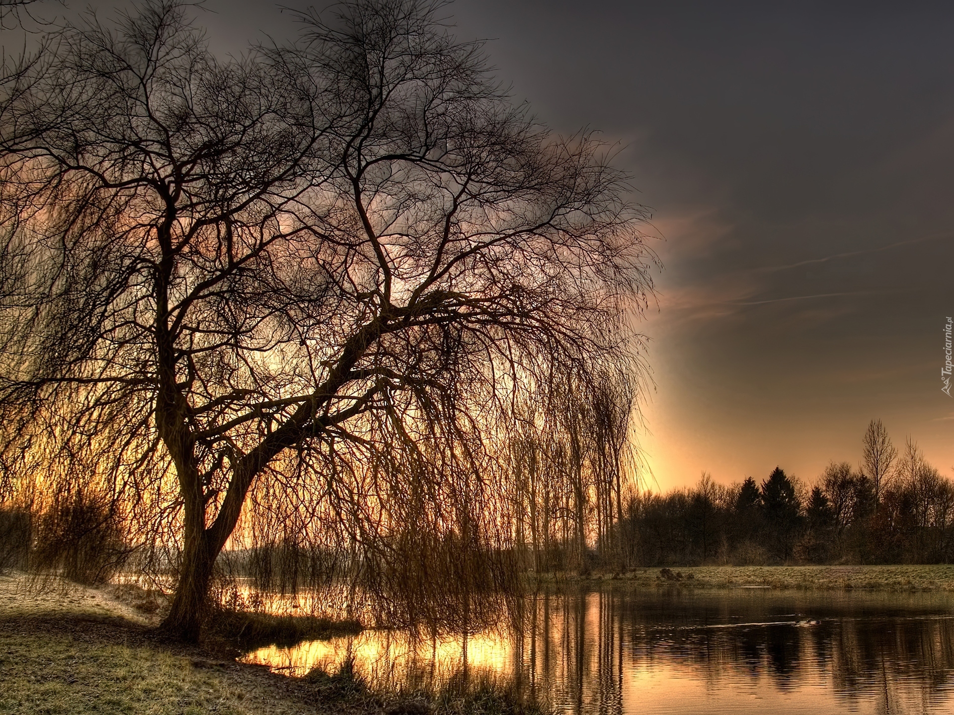 Edytor tapety: Drzewo, Wieczór, Rzeka