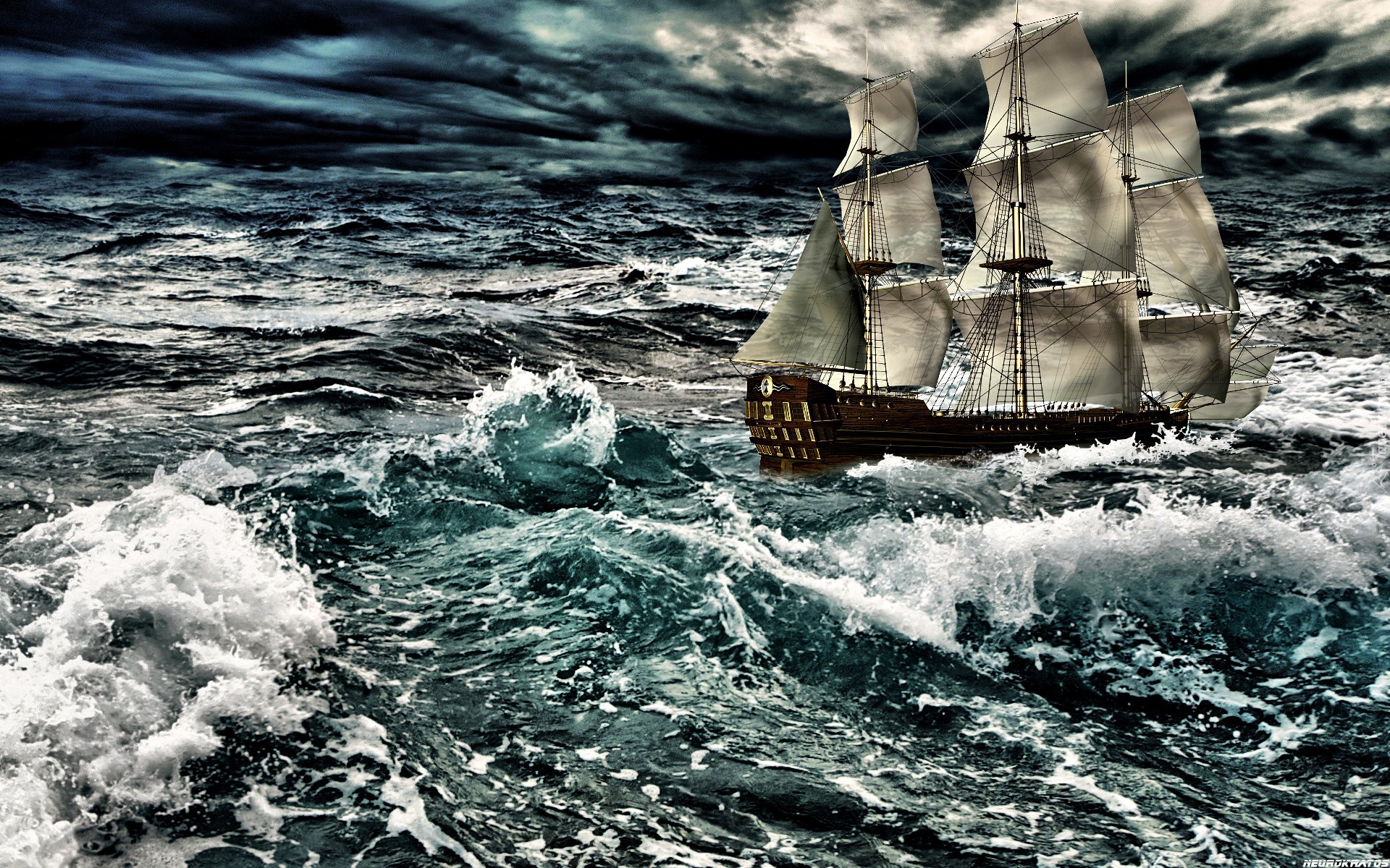 Edytor tapety: Żaglowiec, Morze, Sztorm