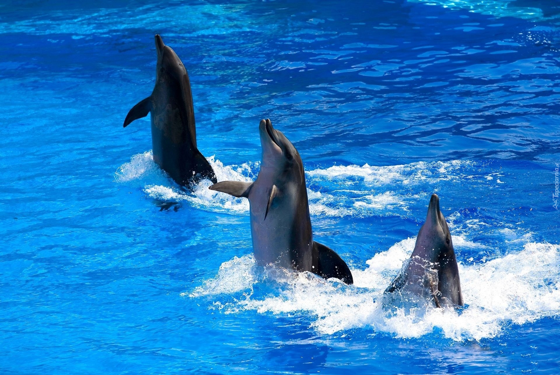 Edytor tapety: Woda, Trzy, Tańczące, Delfiny