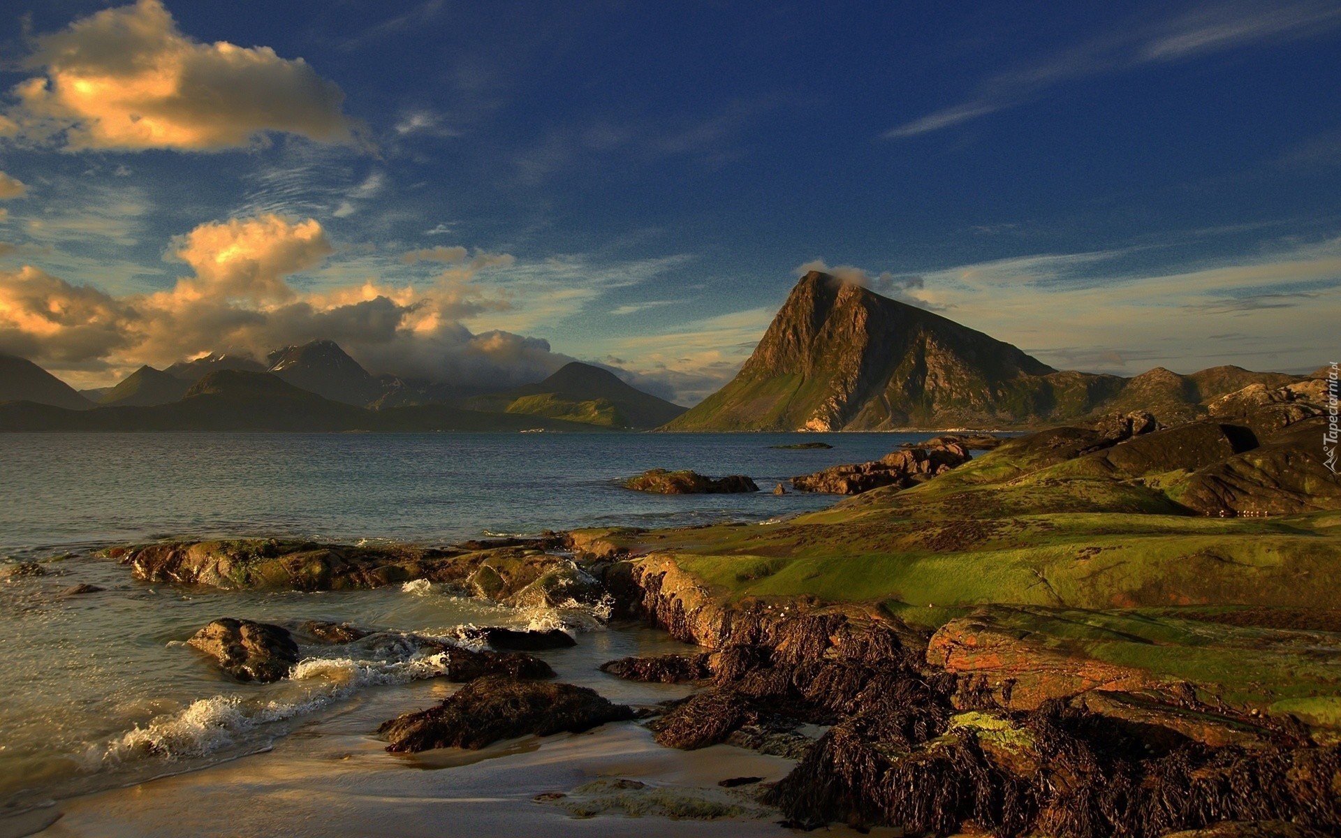 Edytor tapety: Góry, Morze, Zachmurzone, Niebo