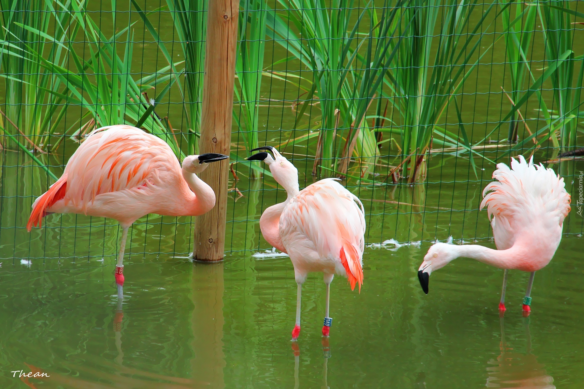 Edytor tapety: Trzy, Flamingi