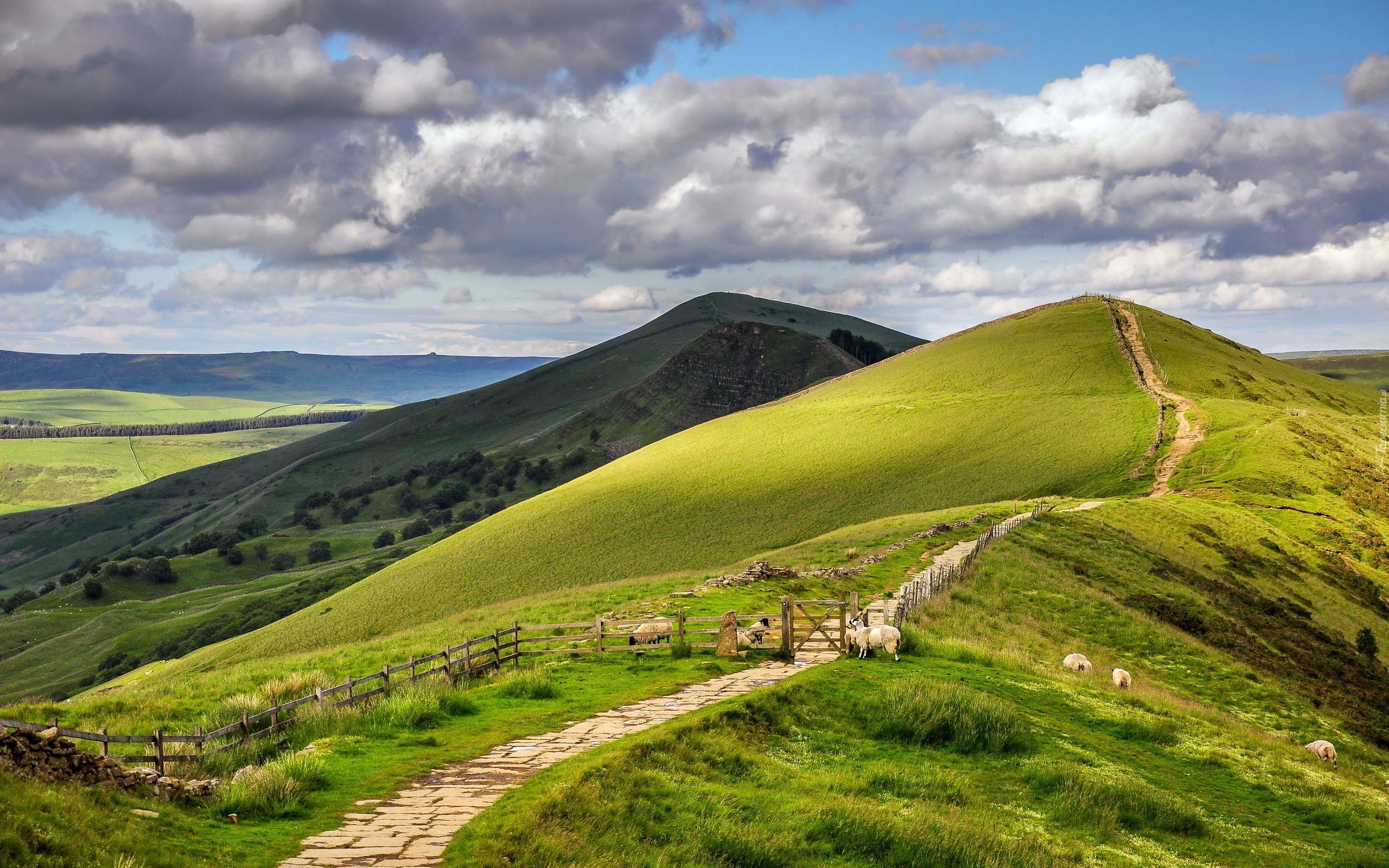 Edytor tapety: Góry, Dróżka, Pastwisko, Owce