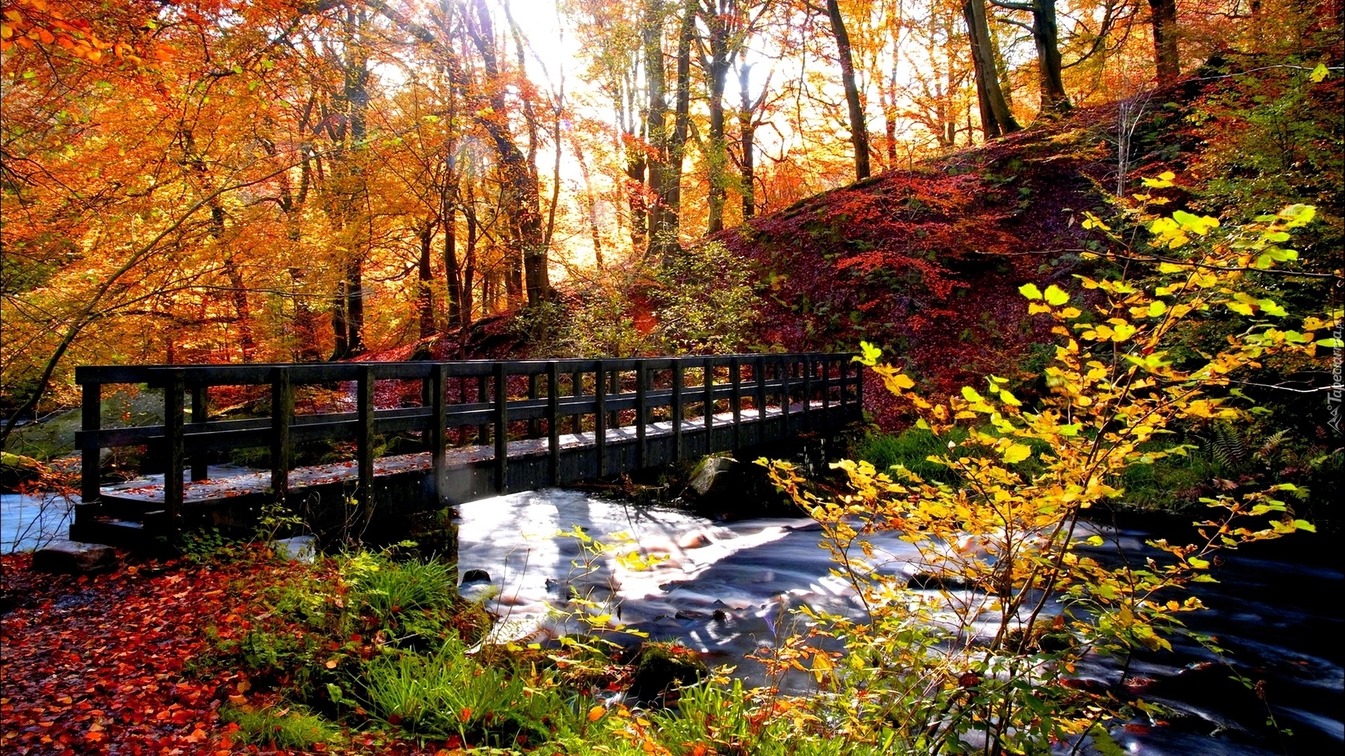 Edytor tapety: Rzeka, Most, Drzewa, Jesień