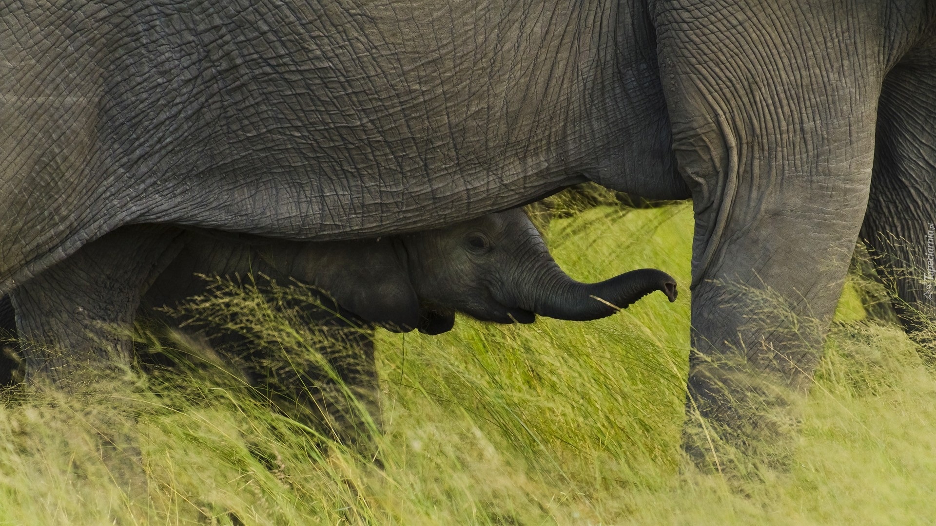 Edytor tapety: Słoń, Duży, Mały, Trawa