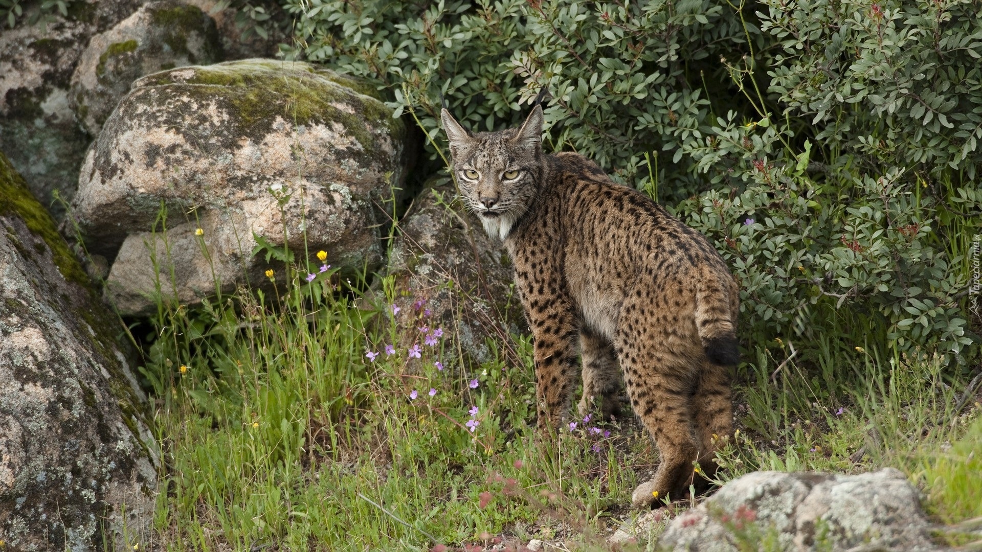 Edytor tapety: Kamienie, Zarośla, Ryś
