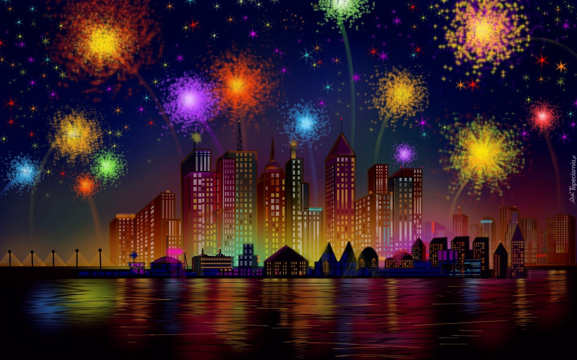 Edytor tapety: Fajerwerki, Miasto, Noc