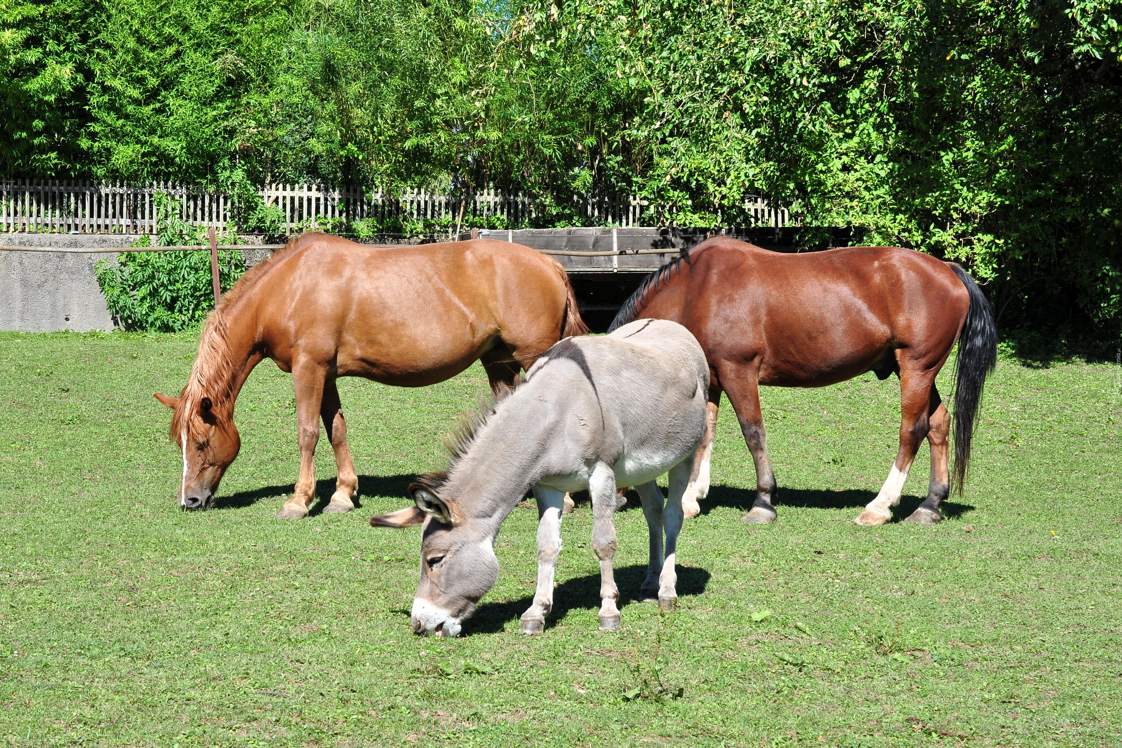 Edytor tapety: Osiołek, Dwa, Konie, Łąka, Drzewa