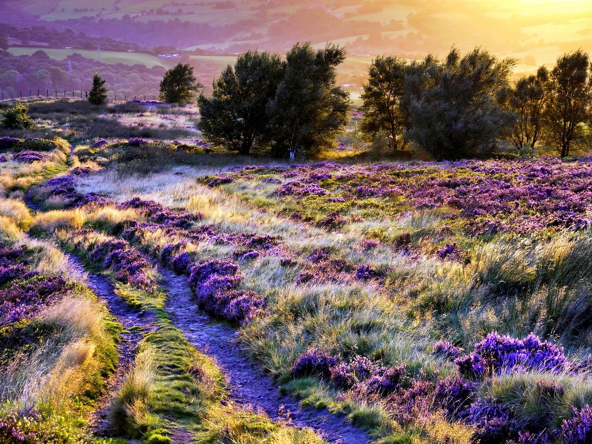 Edytor tapety: Pole, Wrzosowisko, Drzewa