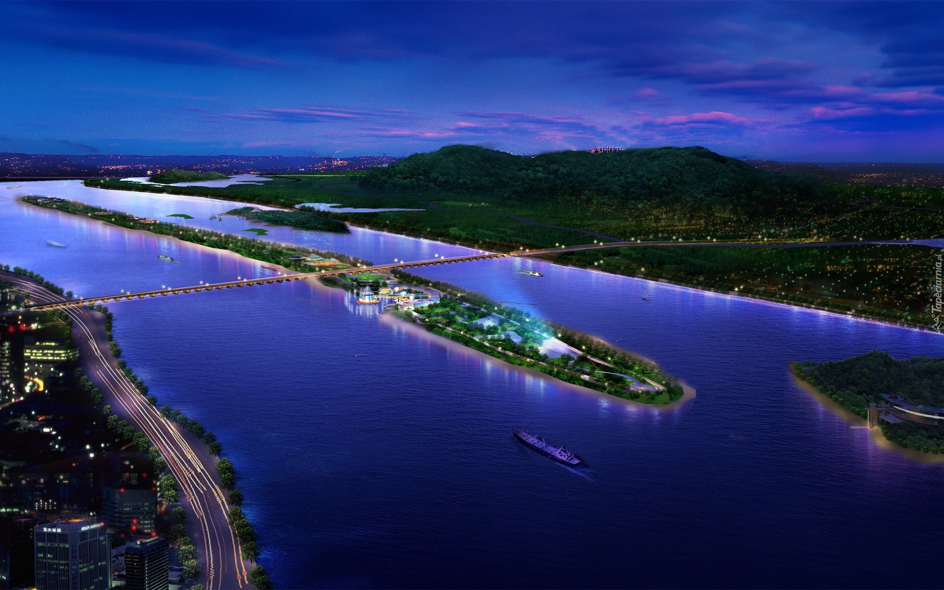 Edytor tapety: Rzeka, Wysepka, Most
