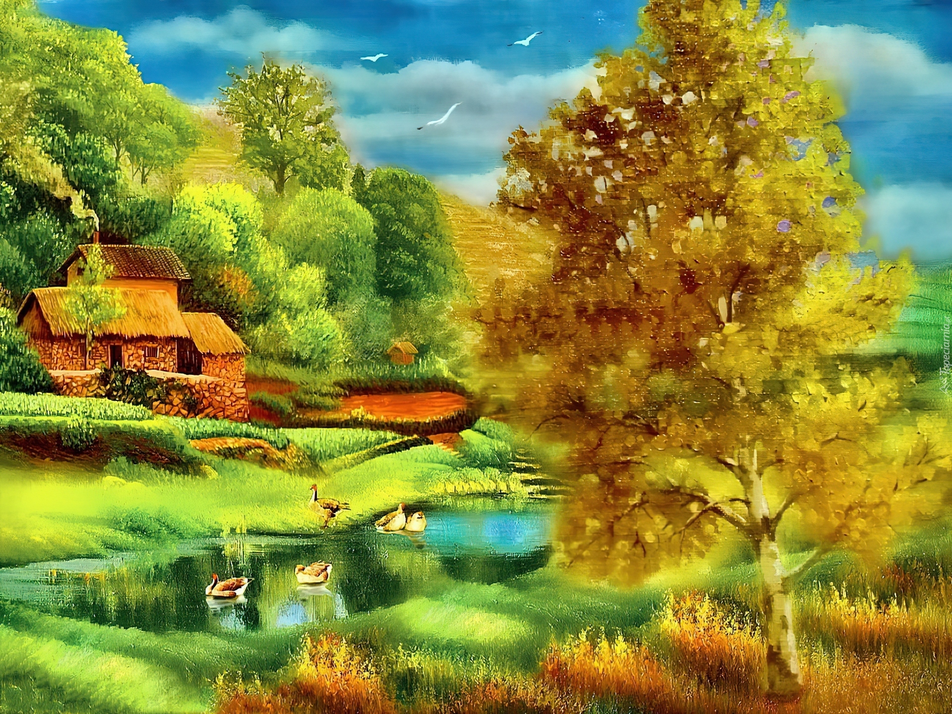 Edytor tapety: Domek, Widoczek, Malarstwo