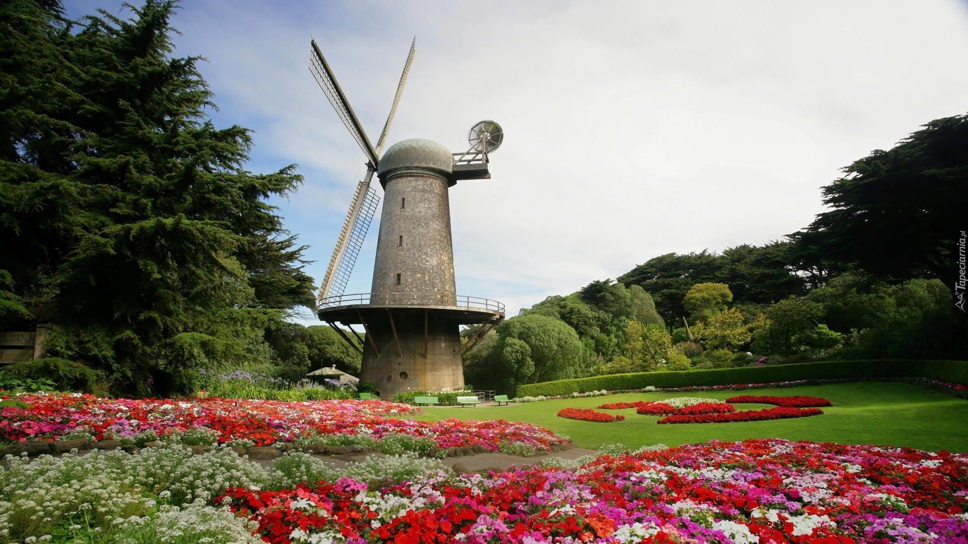 Edytor tapety: Kwiaty, Drzewa, Wiatrak