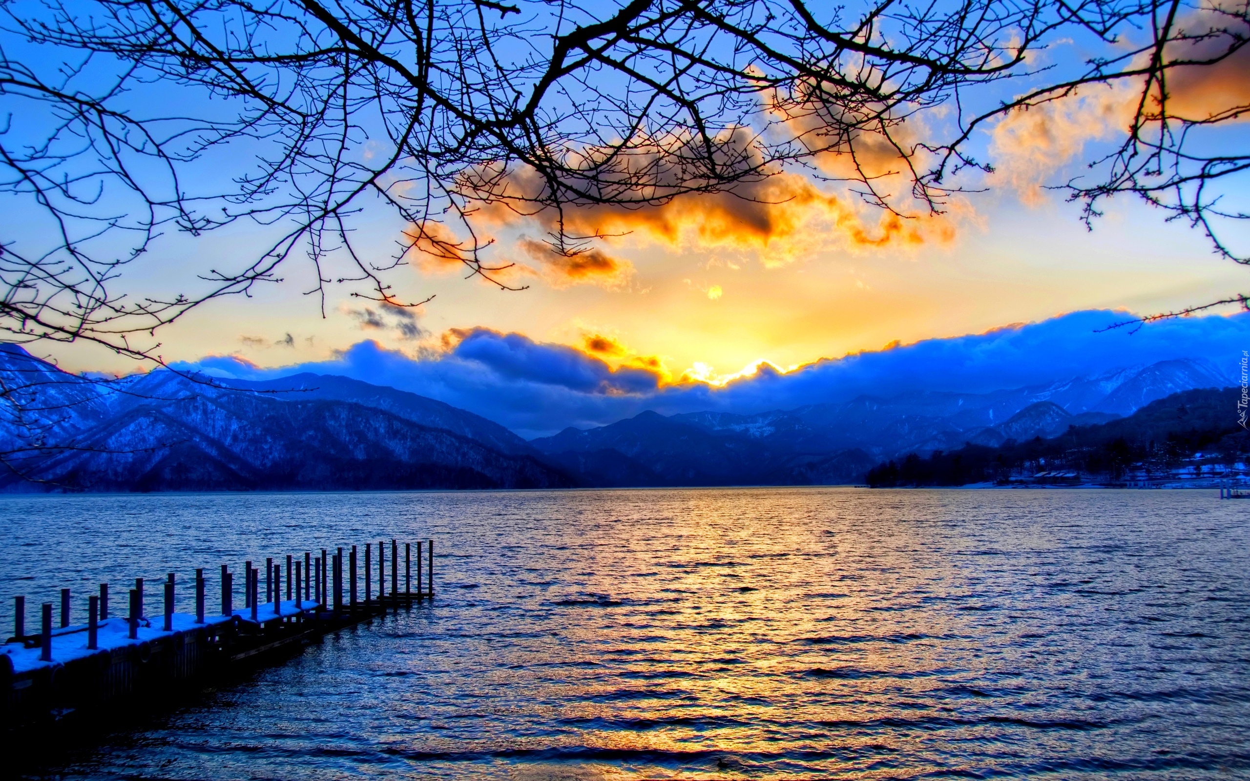 Edytor tapety: Jezioro, Brzeg, Pomost, Zachód, Słońca