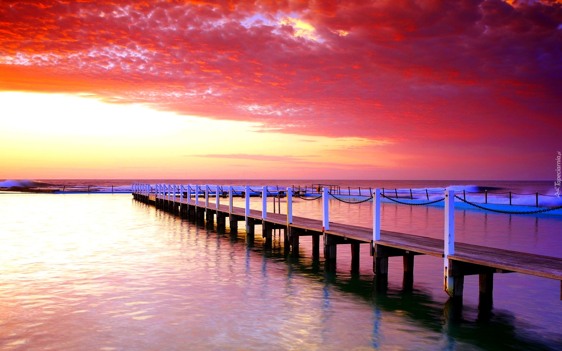 Edytor tapety: Morze, Pomost, Zachód, Słońca