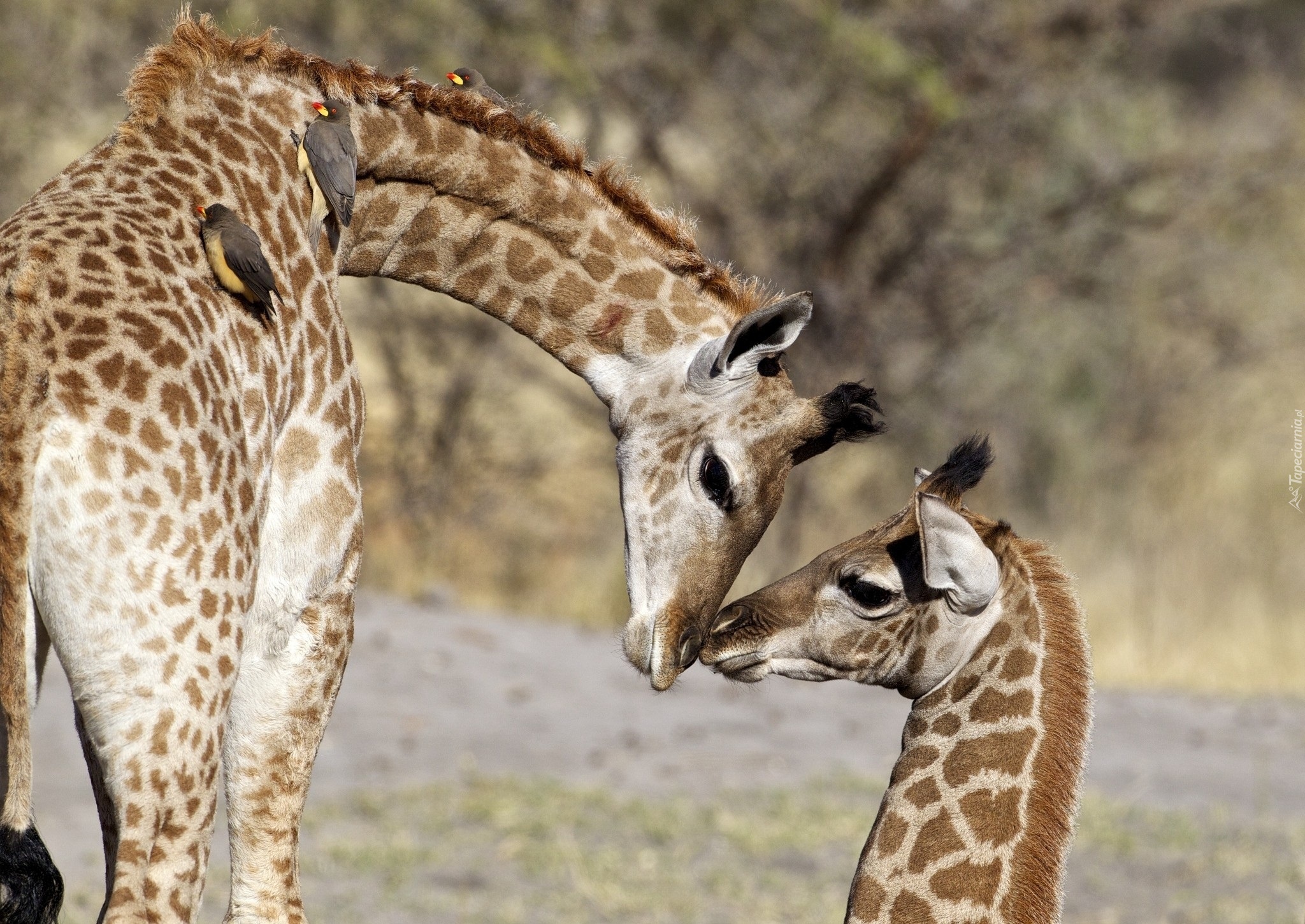 Edytor tapety: Dwie, Żyrafy, Towarzystwo, Ptaków