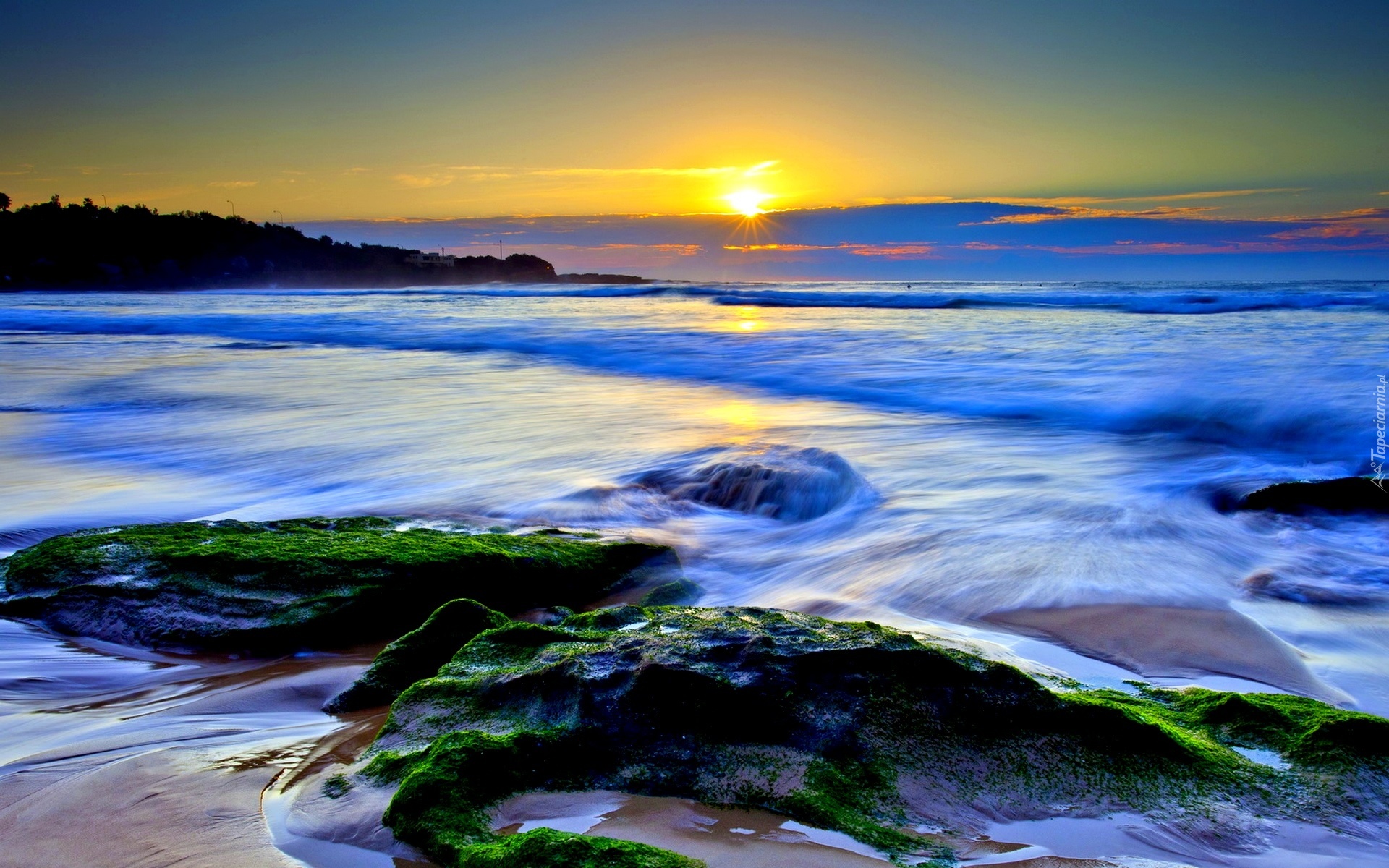 Edytor tapety: Morze, Brzeg, Kamienie, Zachód, Słońca