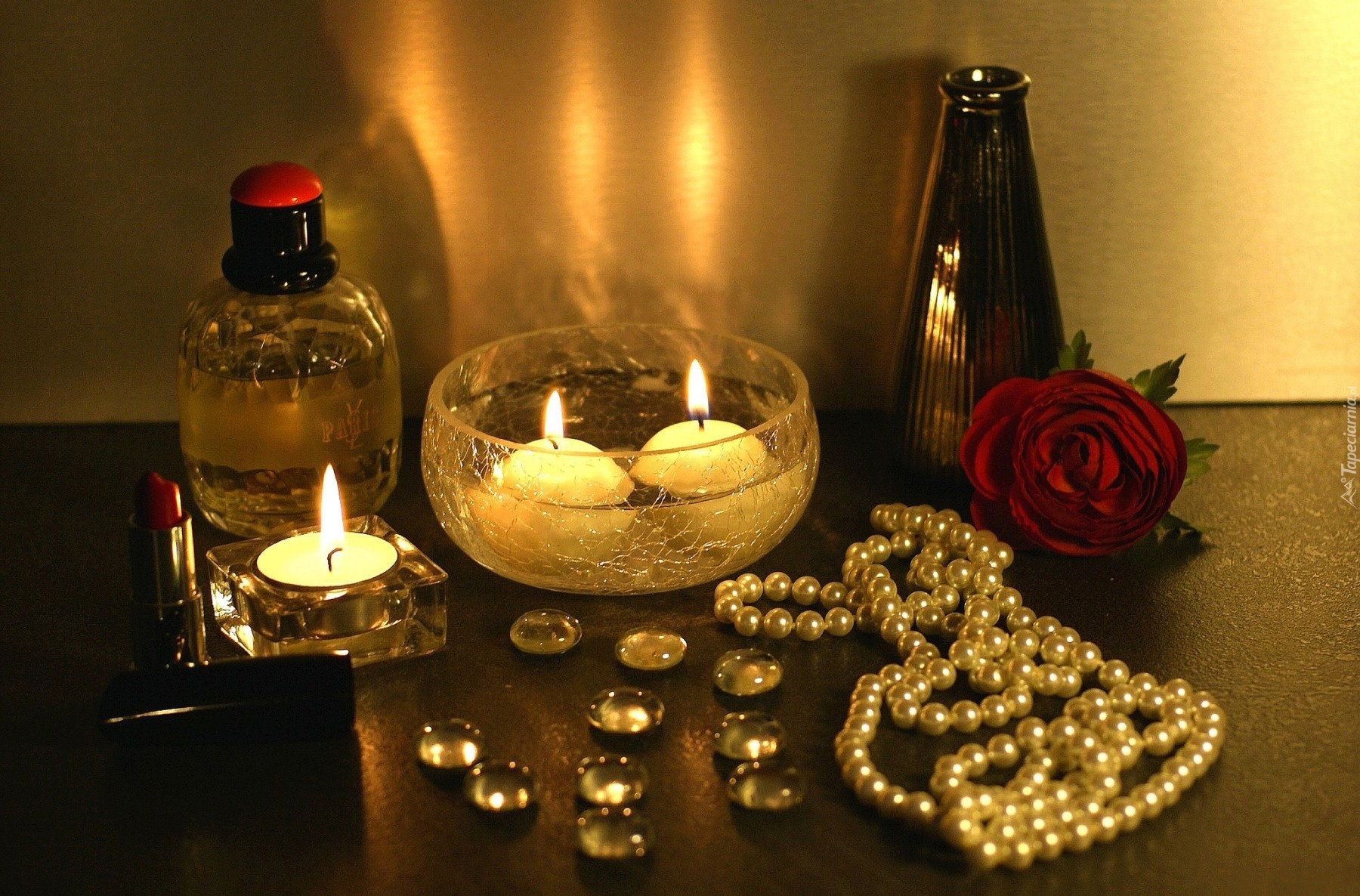 Edytor tapety: Kompozycja, Perły, Świece, Róża