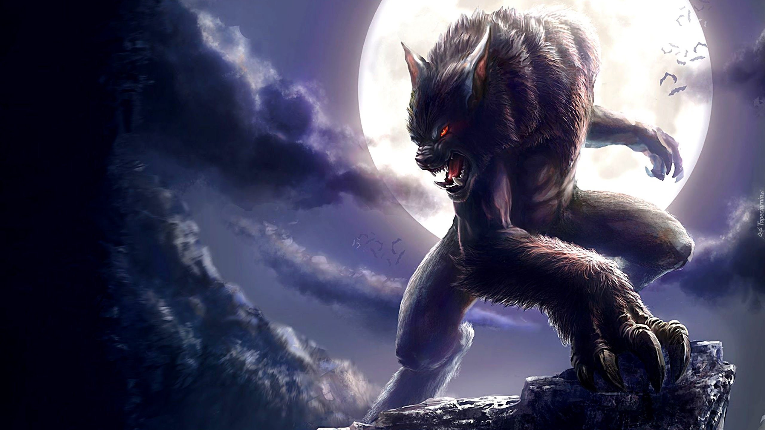 Edytor tapety: Wilkołak, Noc, Księżyc