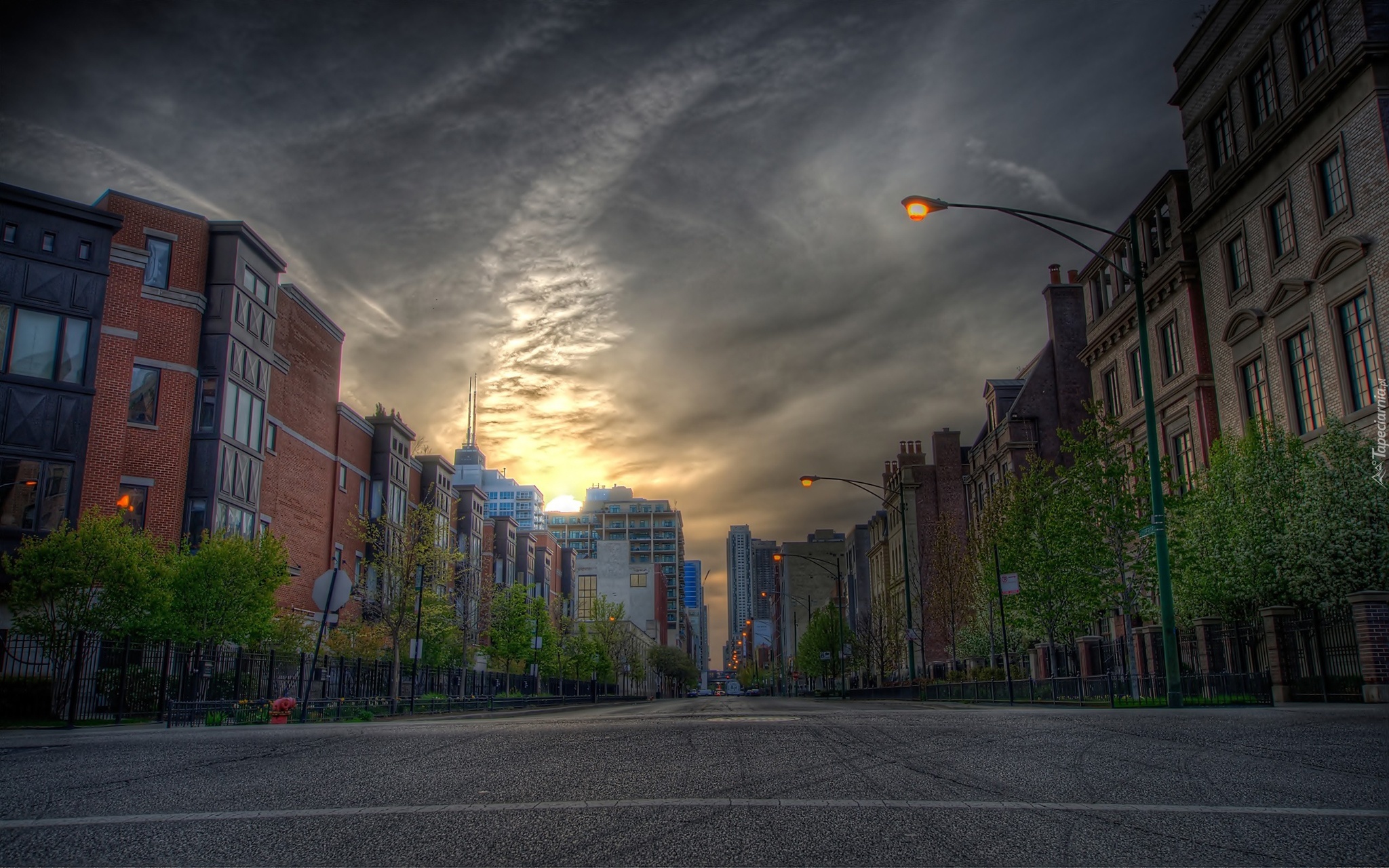 Edytor tapety: Ulica, Budynki, Drzewa, Niebo