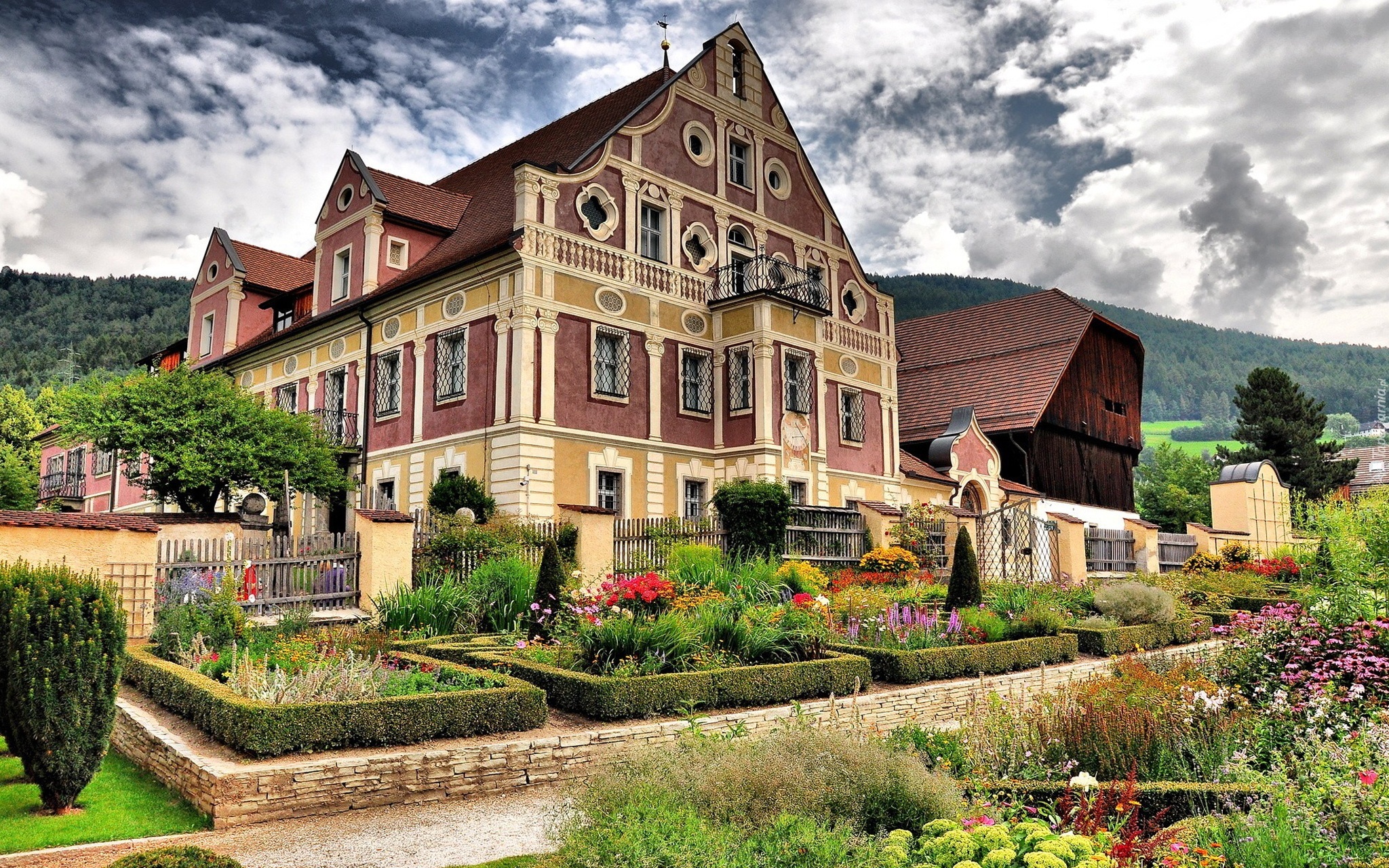 Edytor tapety: Ładny, Dom, Kwiecisty, Ogródek, Niebo
