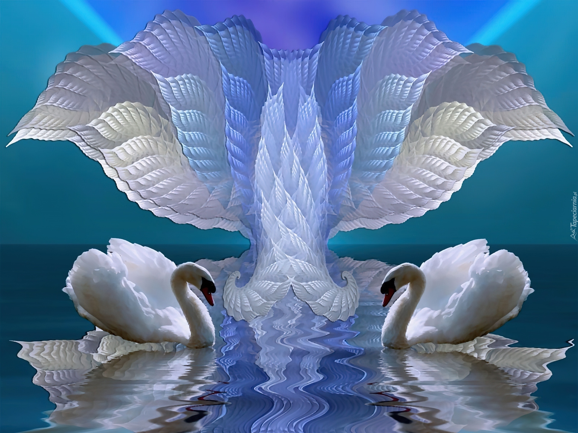 Edytor tapety: Białe, Łabędzie, Na, Jeziorze